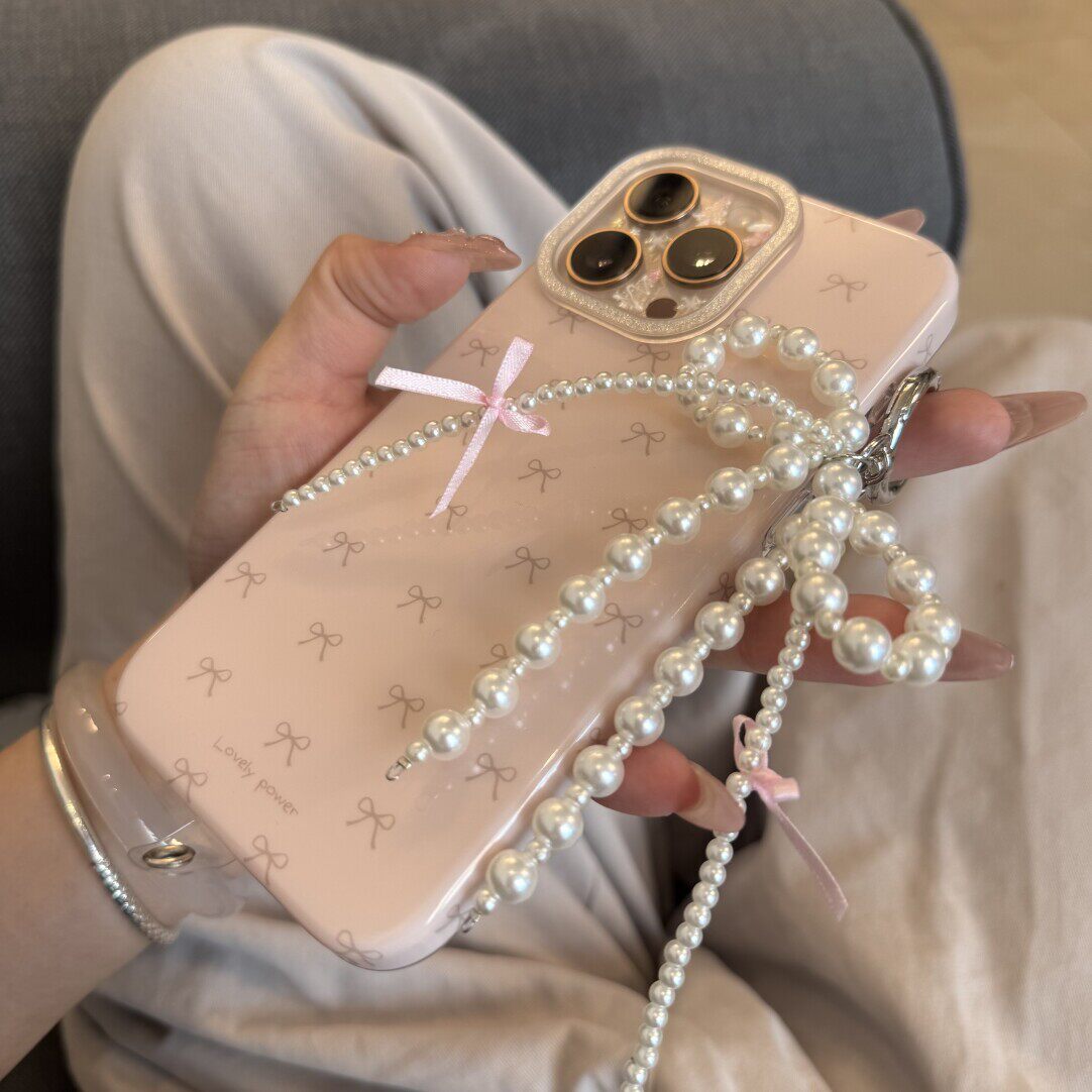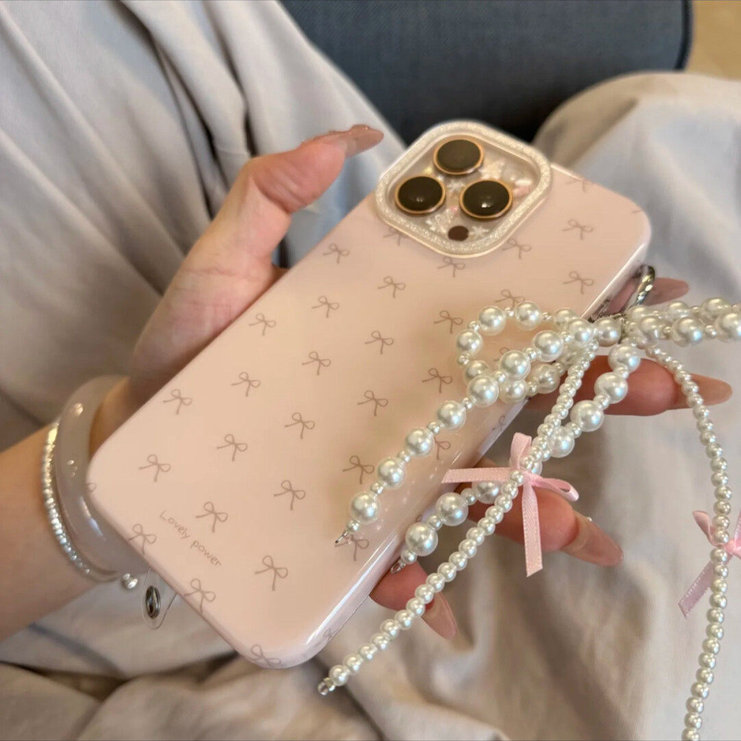 淘宝ins风满屏温柔珍珠蝴蝶结挂件适用苹果17promax女款15Promax手机壳14Pro少女心iPhone13p创意简约16Pro防摔套