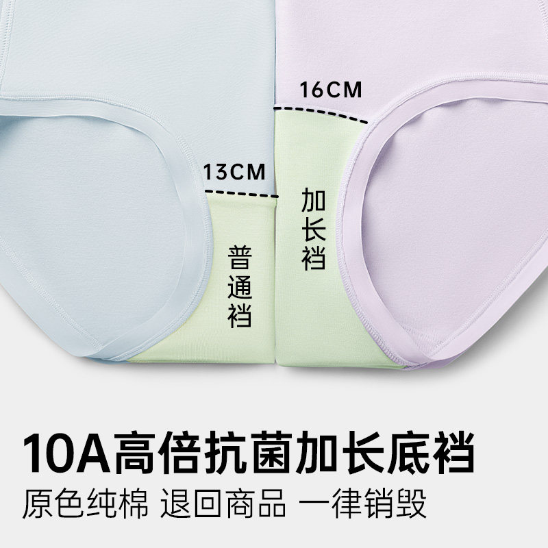 淘3条A类棉女士内裤女生纯棉7A抗菌中腰透气少女生大码三角裤纯色款