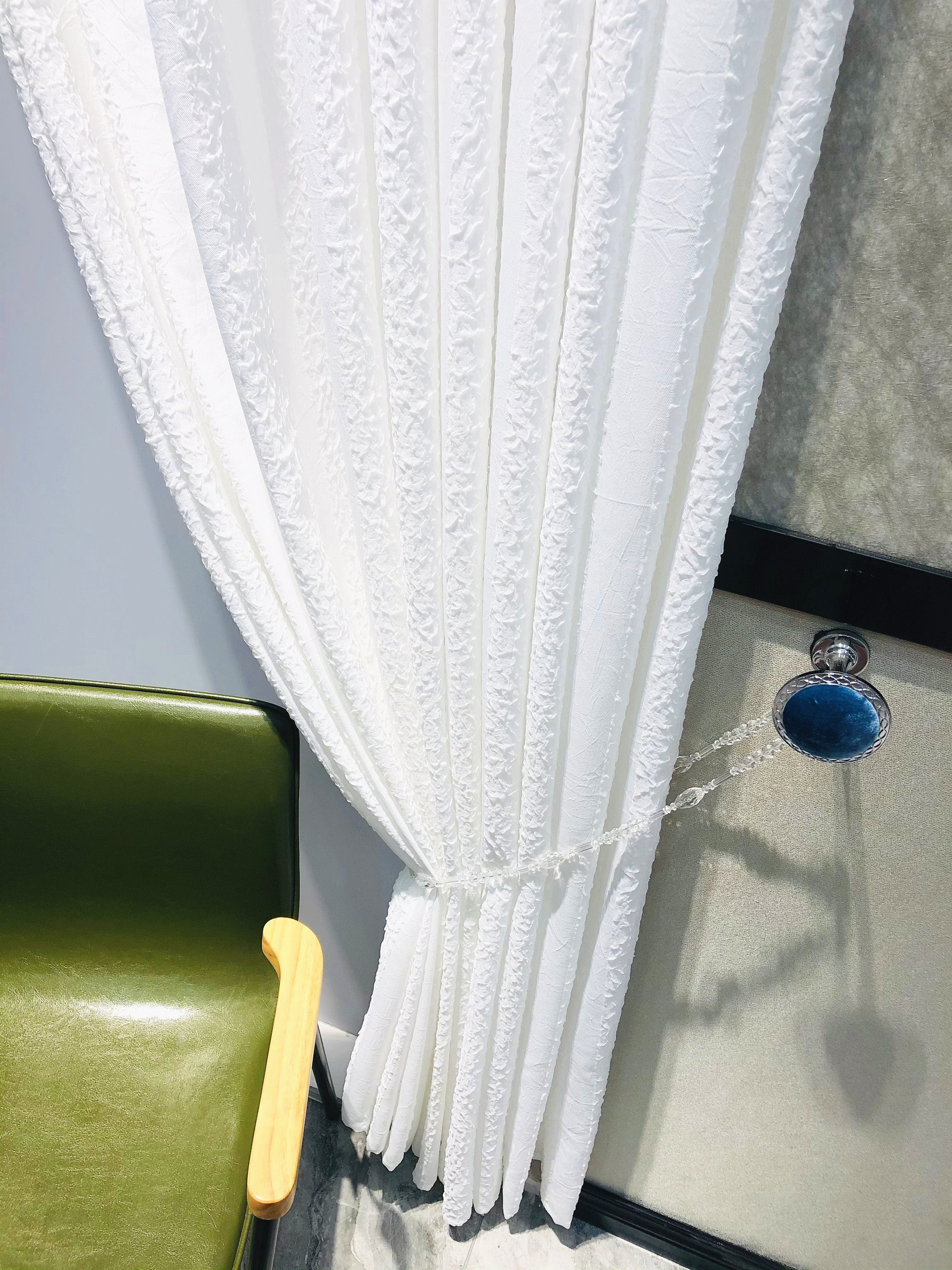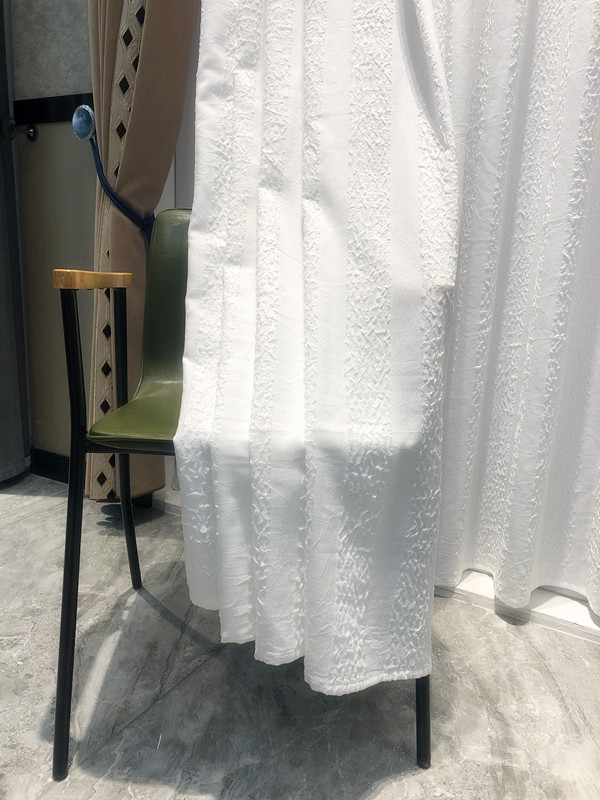 淘宝泡泡纱云朵纱透光不透人加厚白纱北欧轻奢卧室客厅条纹窗纱窗帘