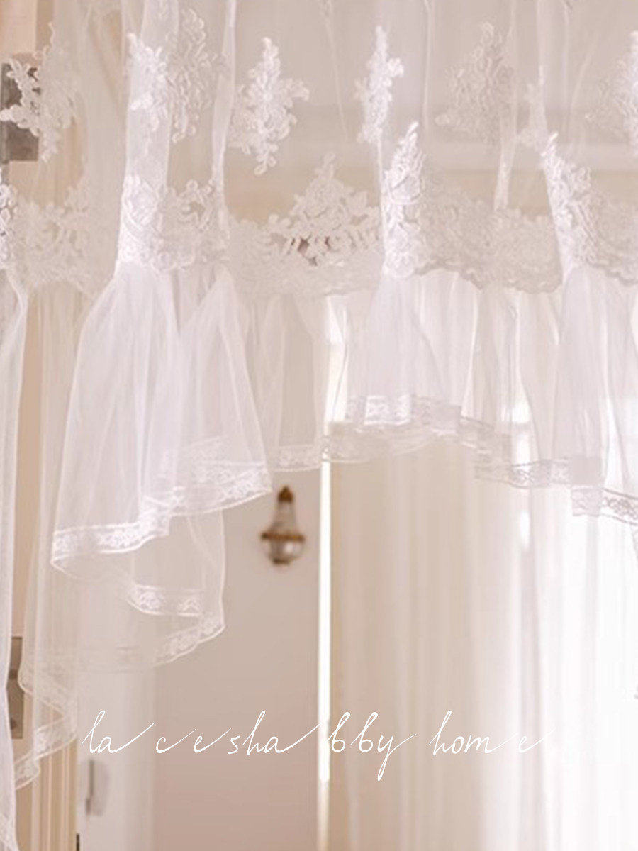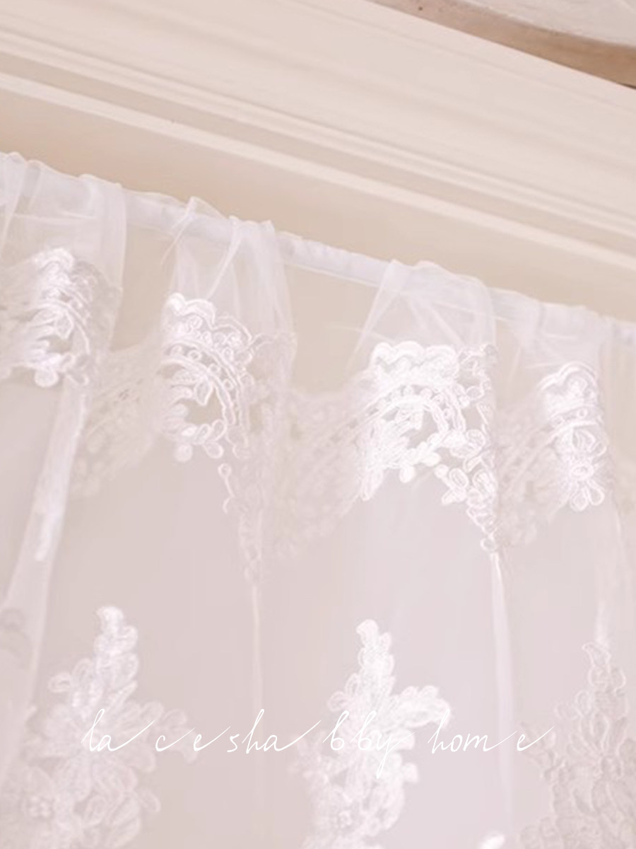 淘宝LACESHABBY新款轻奢复古浮雕绣花蕾丝百褶小清新窗纱半帘门帘窗帘