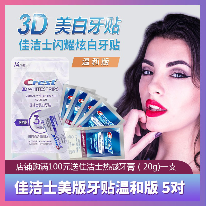 淘宝美国进口佳洁士温和版牙贴5对10贴3D闪耀炫白牙齿去黄除黑美白牙