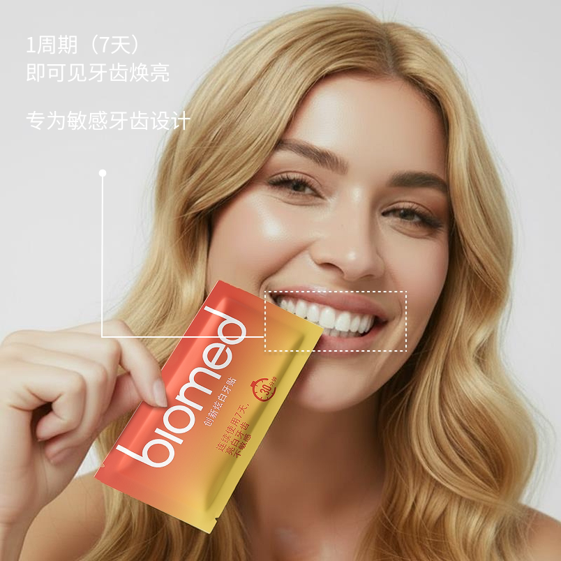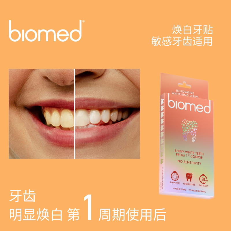 天猫biomed不含氟牙贴美白成人靓白去黄温和不敏感牙齿贴片官方正品