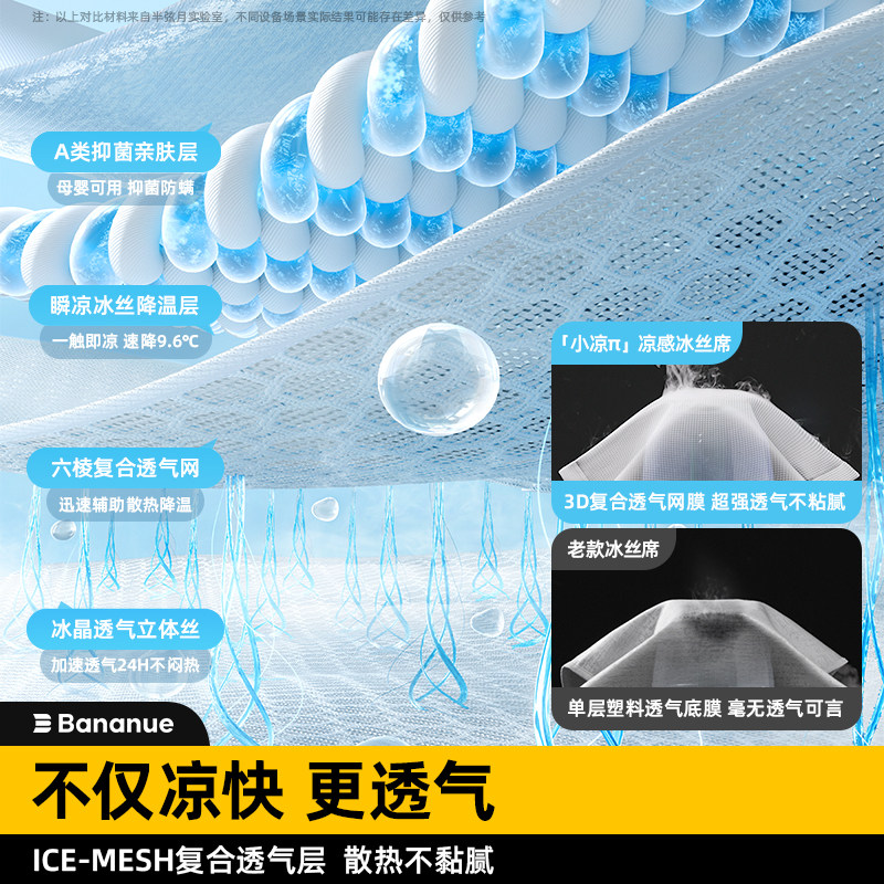 2025年新款半弦月凉席,采用高品质冰丝面料,触感丝滑清凉,透气排湿性能卓越,带来整夜舒爽睡眠体验。通过国家A类母婴级安全认证,无刺激、无异味,亲肤安全,孕妇与婴幼儿均可安心使用。创新软席设计,柔软贴合床垫,不易褶皱,兼顾凉感与舒适。配套床笠款设计,松紧带包裹稳固,适用于学生宿舍、单人床等多种场景。易清洗、快干、抗静电,是夏季纳凉的理想之选。半弦月品牌匠心打造,融合美学与实用,让清凉与健康伴您度过每一个炎热夏日。