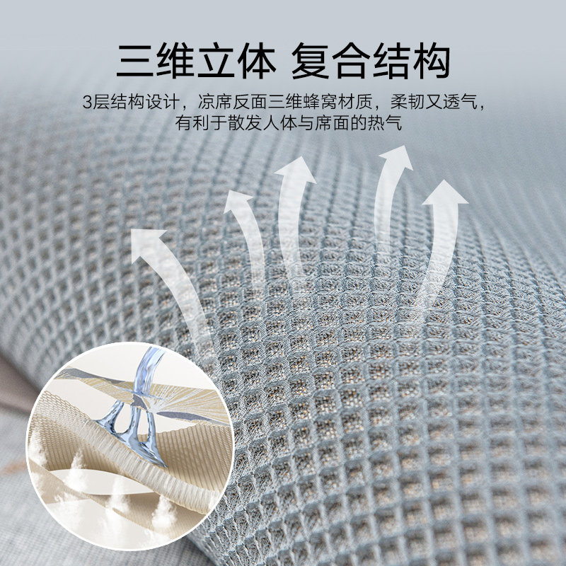 罗莱家纺冰藤席2.0pro可水洗冰丝凉席夏季可折叠学生宿舍三件套