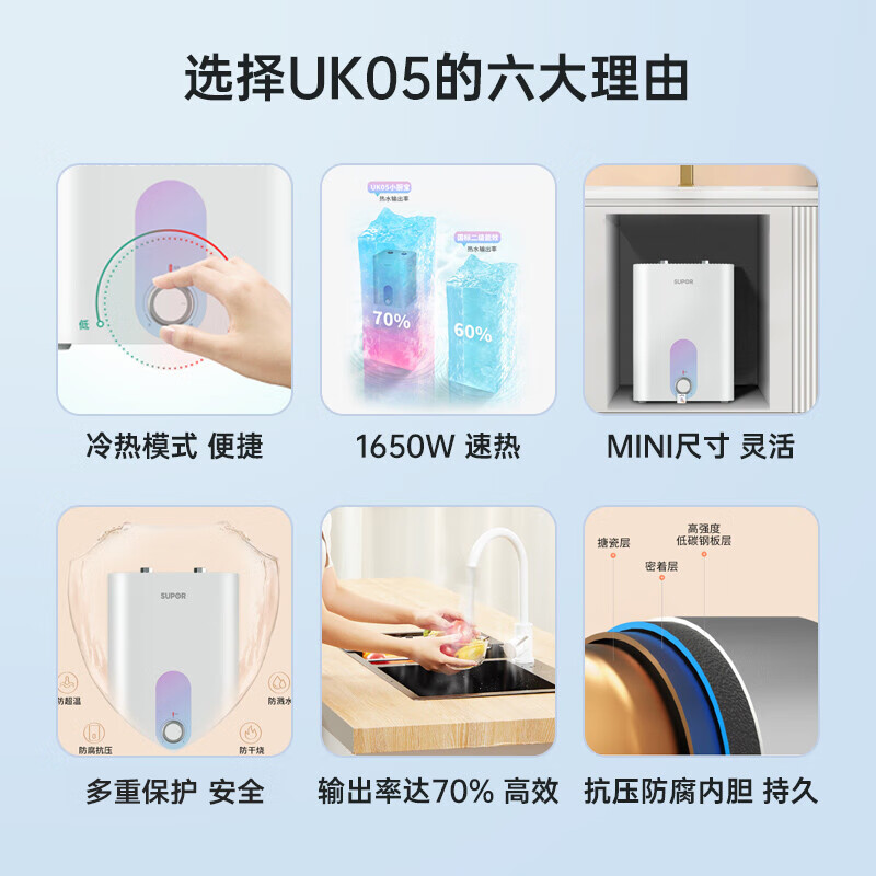 天猫苏泊尔小厨宝热水器厨房家用台下式速热小型储水即热水宝UK05 26