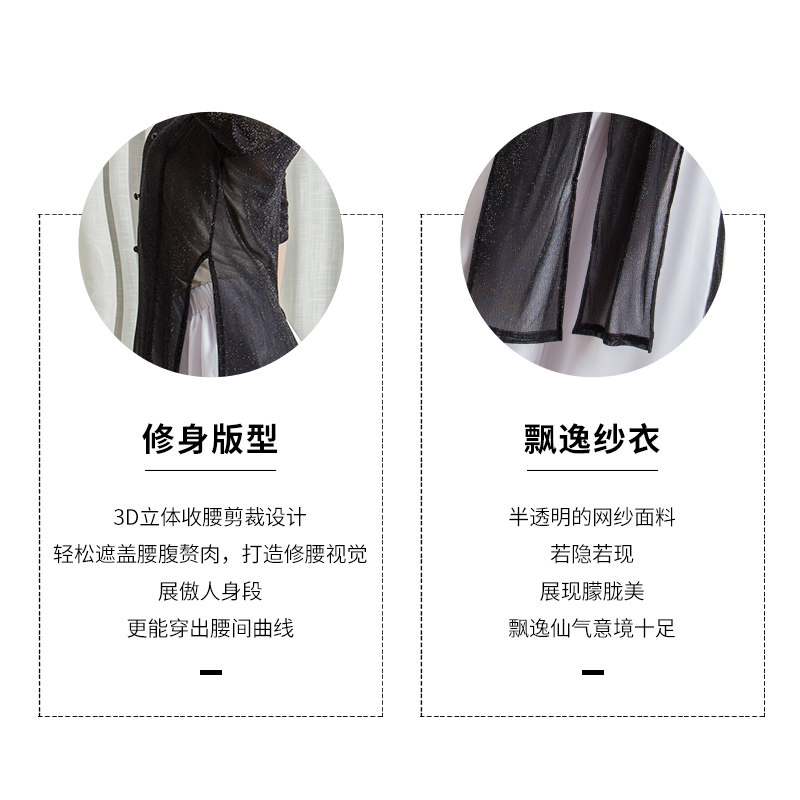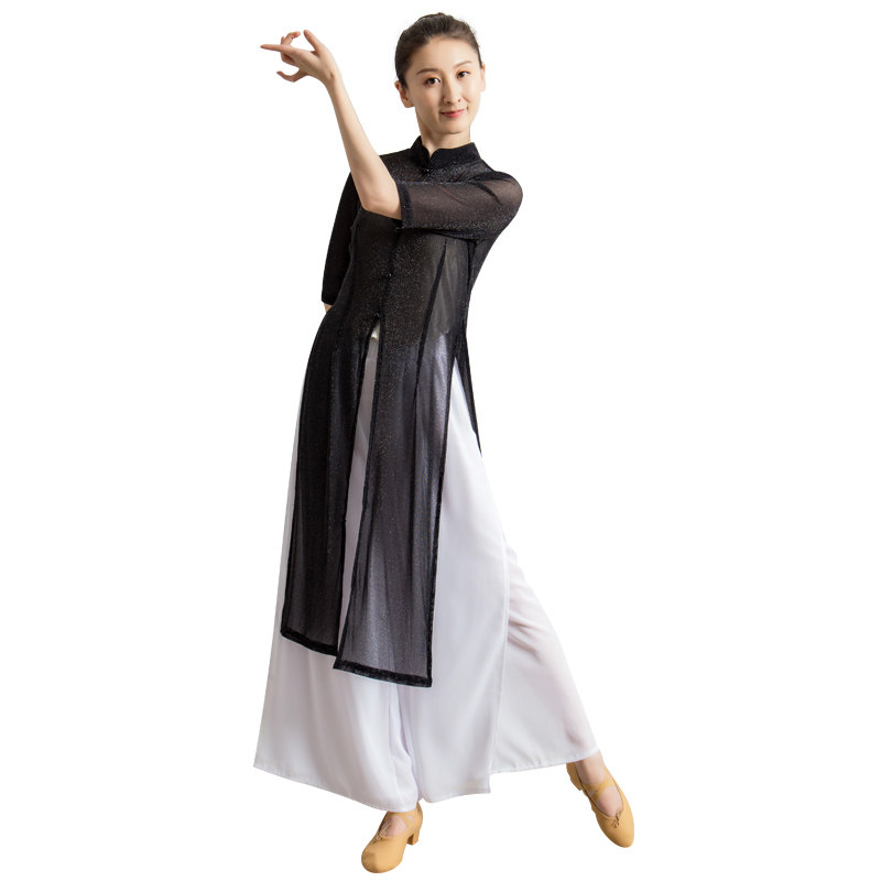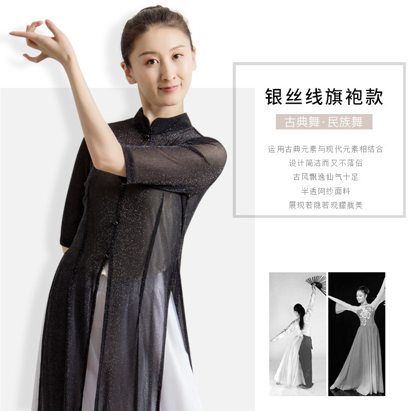 淘宝古典舞蹈古风练功服装身韵纱衣飘逸长款旗袍训练女中国舞外披上衣