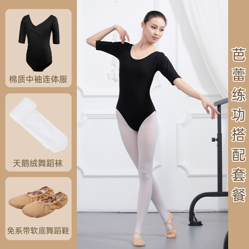 淘宝云逸舞蹈中袖舞蹈服训练形体服连体上衣女优雅古典舞芭蕾舞练功服