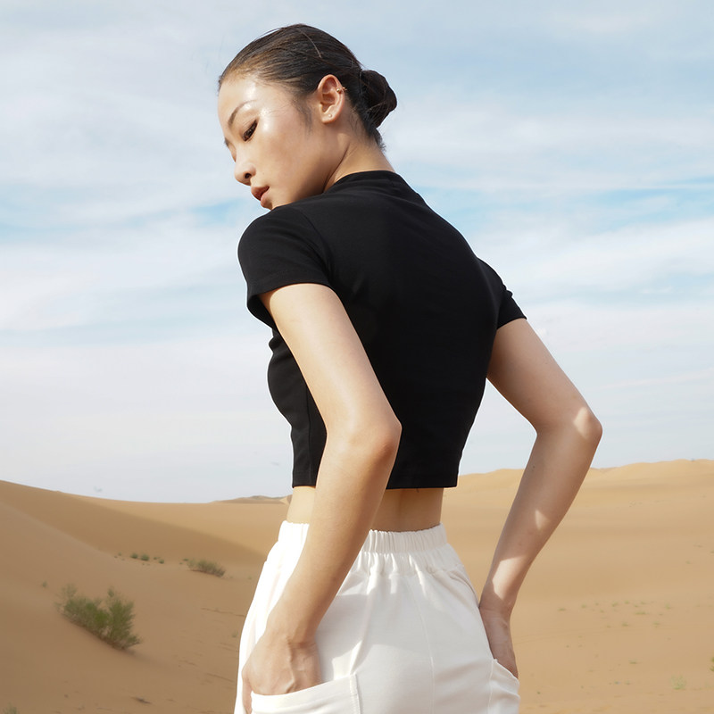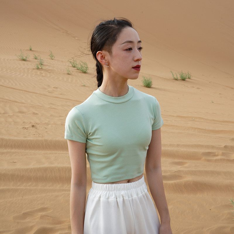 淘宝涂一丨TE601现代舞蹈练功服女式紧身舞蹈T恤短款民族古典舞短袖黑