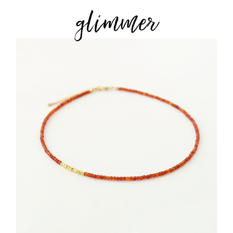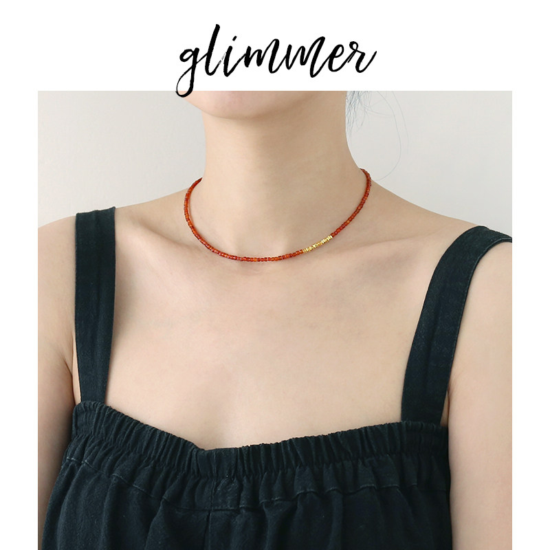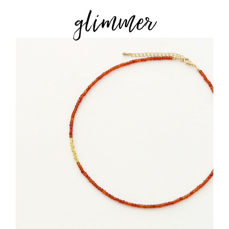 淘宝glimmer铜镀金红玛瑙细串珠优雅颈链ins风法式复古锁骨项链