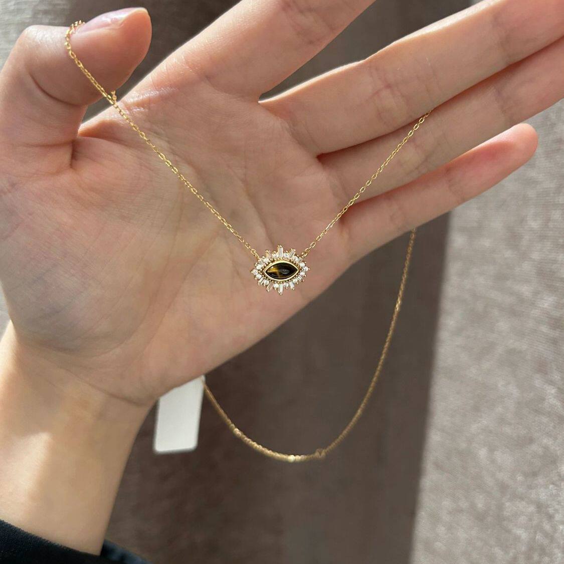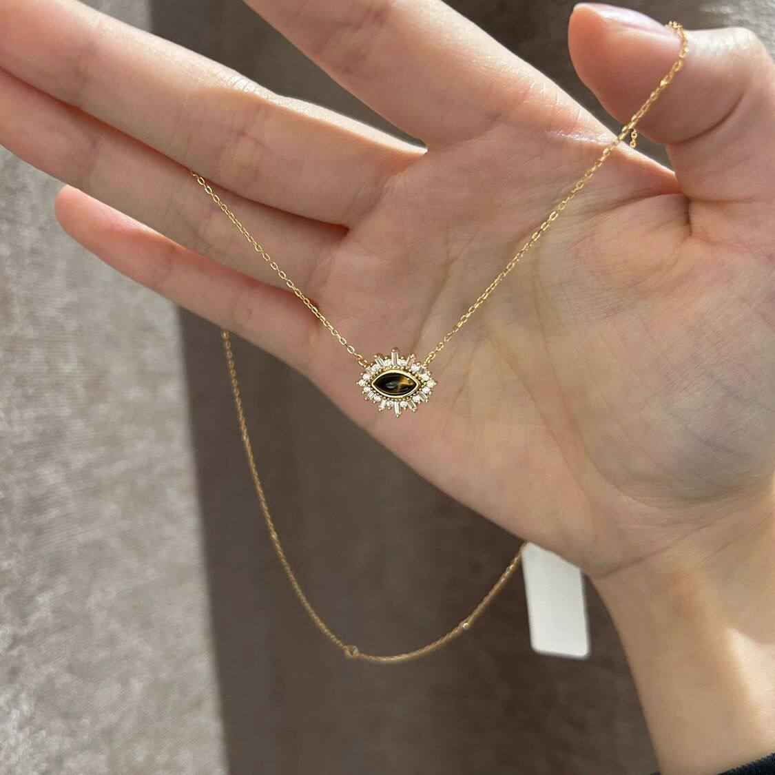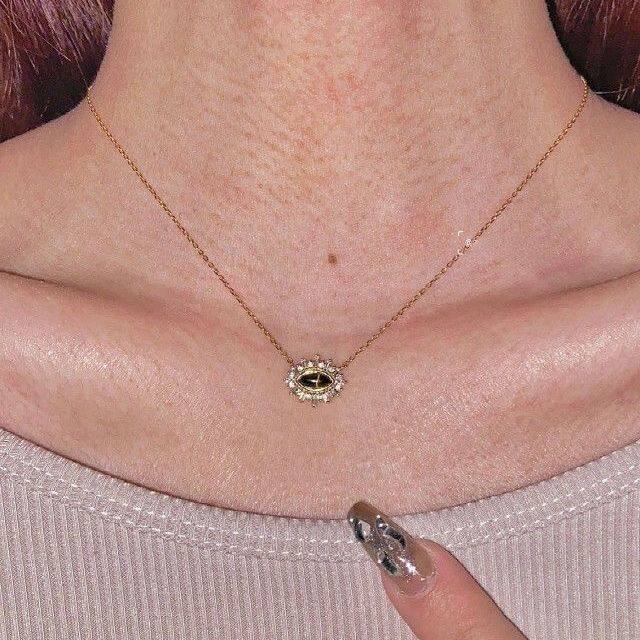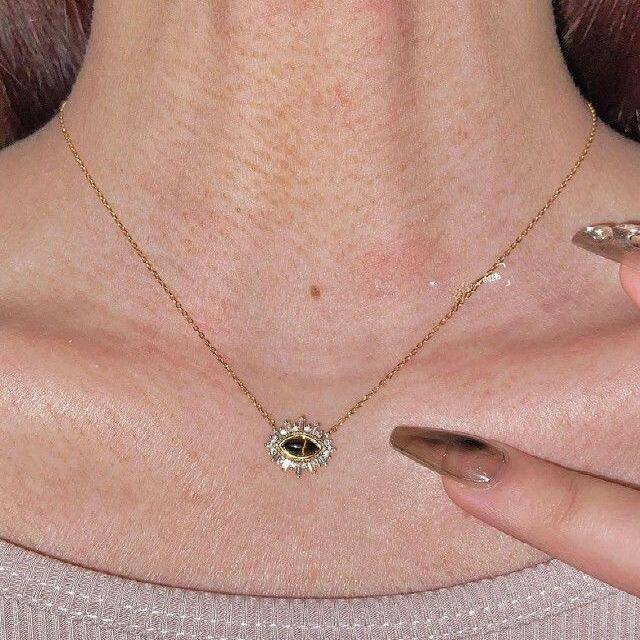 淘宝小红书日冕之眼神秘琥珀项链复古虎睛石小众镀金锁骨项链女春夏