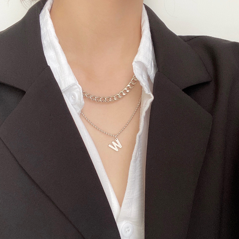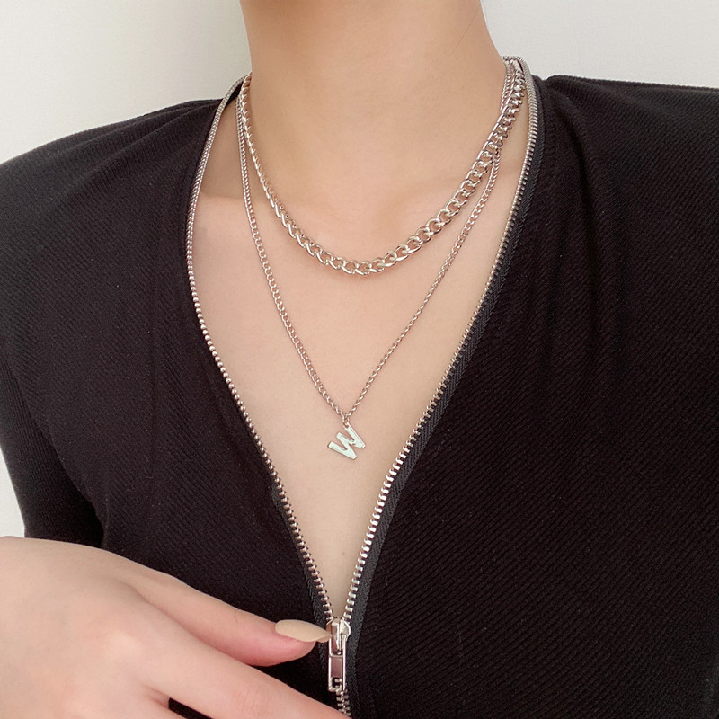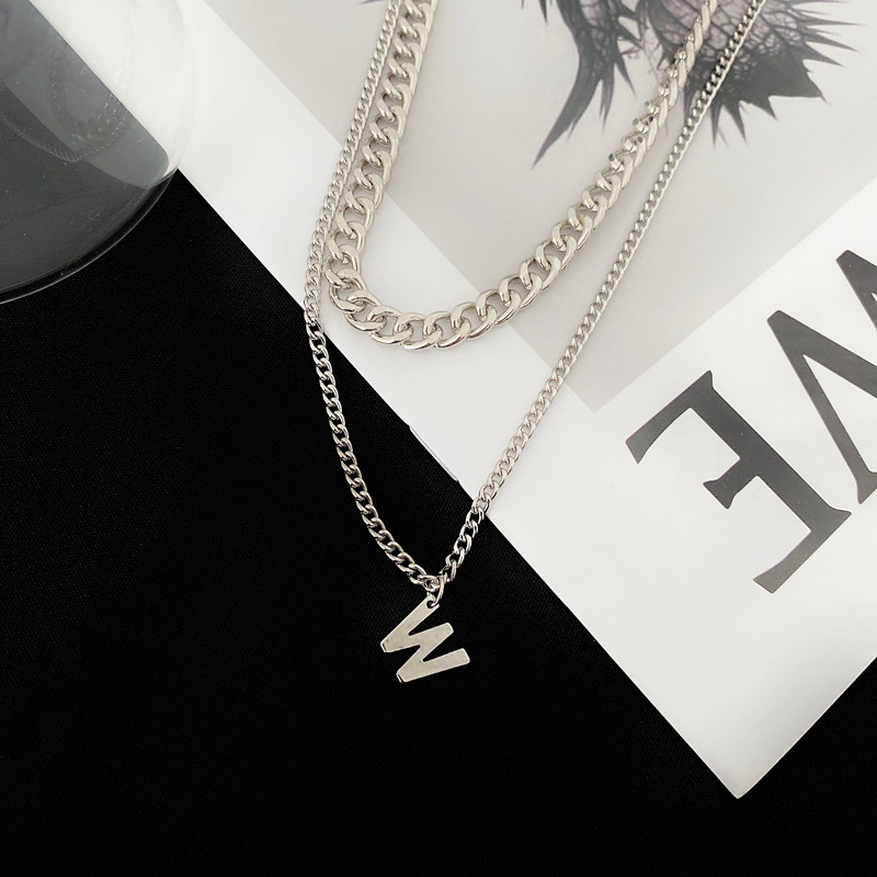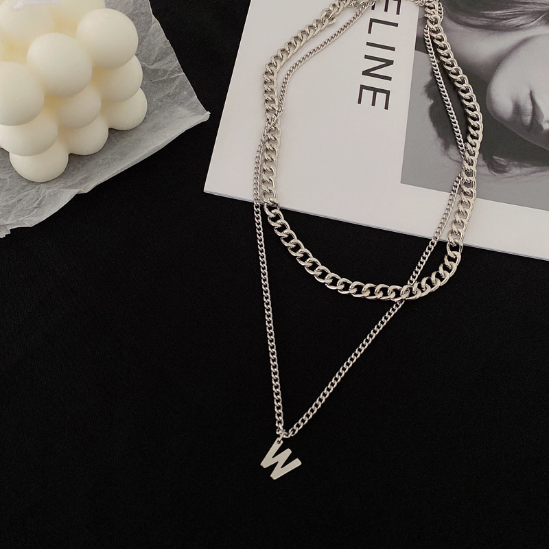 淘宝W字母双层小众网红项链个性嘻哈男女情侣土酷高街搭配短tee颈链