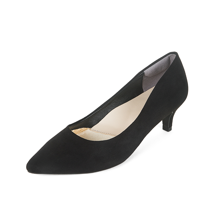 天KISSCAT接吻猫[繁花]高跟鞋25新款真皮黑色高级浅口单鞋尖头婚鞋