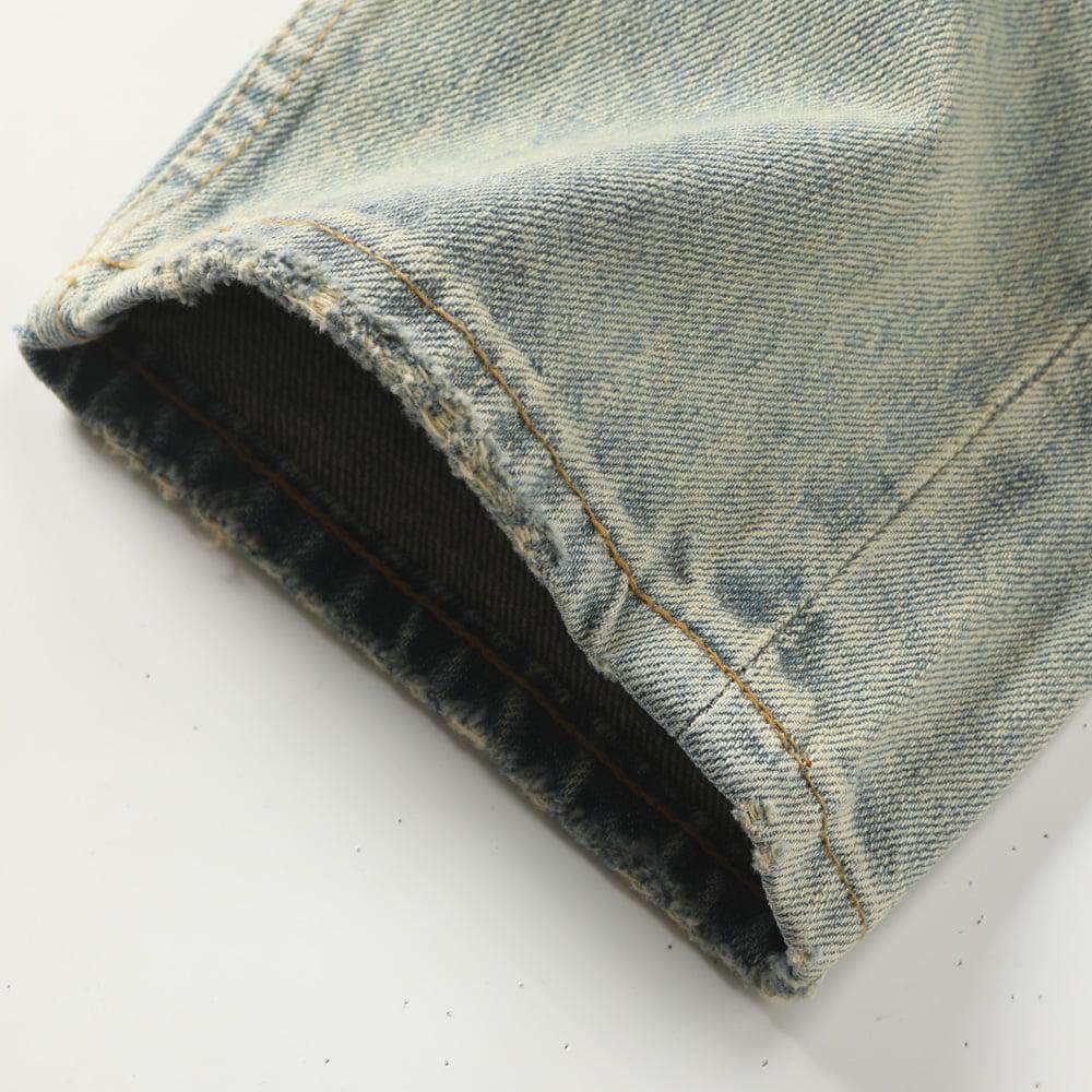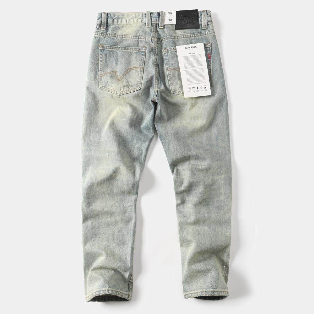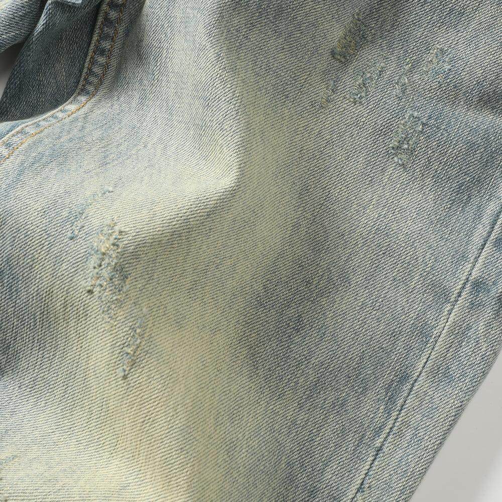 天猫赤耳单宁重磅纯棉男牛仔裤水洗做旧刮烂破洞浅蓝直筒宽松休闲裤子