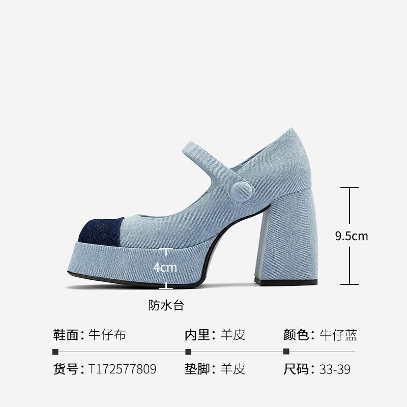 天猫【牛仔很忙】JOOC玖诗玛丽珍鞋女2025春季新款复古粗跟高跟鞋单鞋