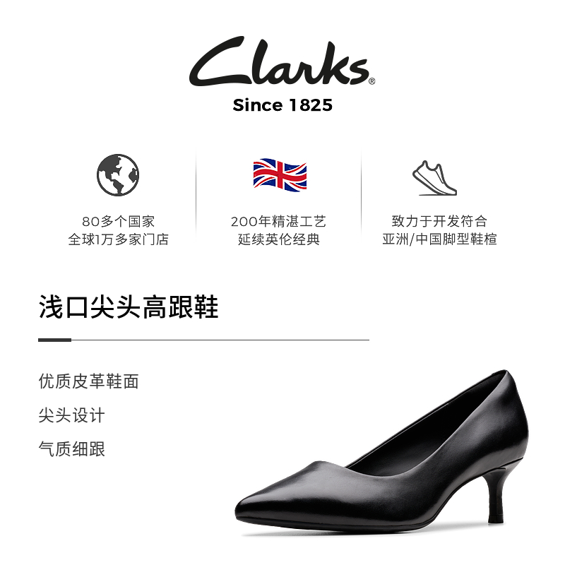 天猫【秋冬新品】Clarks其乐Zarey Court女鞋细跟浅口尖头高跟单鞋
