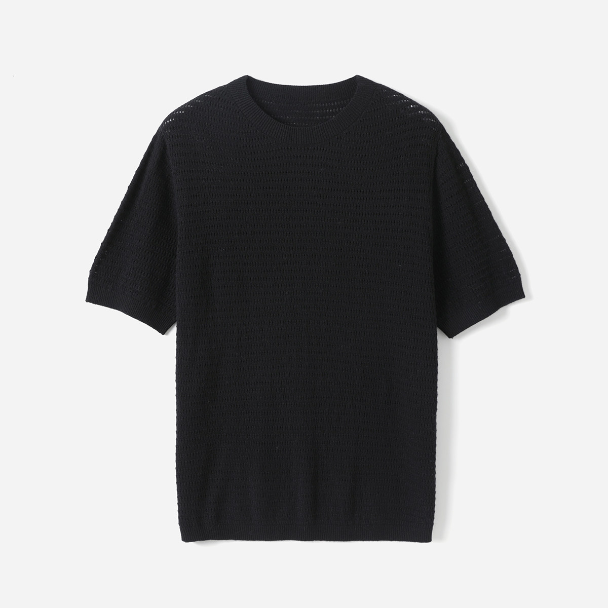 淘宝* WZT09146 茉莉雅集 软糯羊毛混纺镂空挑洞圆领短袖针织套衫