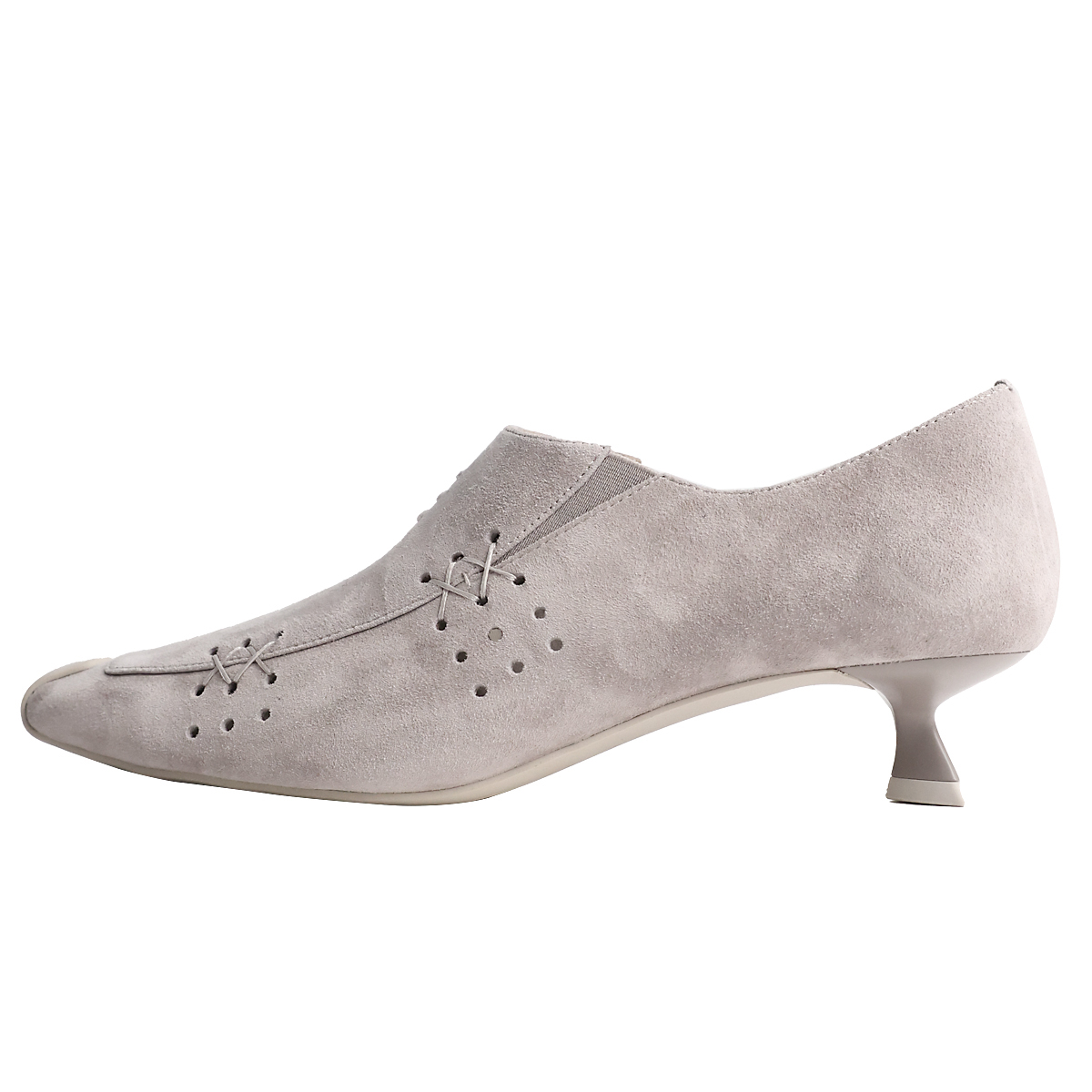 淘宝KAKA 米兰客订款磨砂羊皮镂空方头中口一脚蹬老钱风小猫跟高跟鞋
