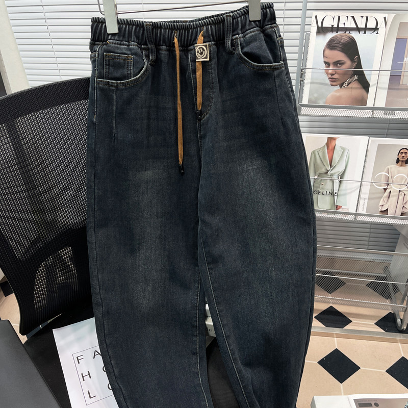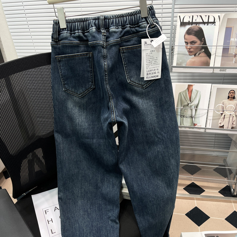 胡子叔大码加绒加厚牛仔裤,专为胖MM设计,兼顾保暖与时尚。采用高腰松紧腰头,舒适不勒腹,轻松包容腰腹赘肉;宽松哈伦版型,巧妙修饰腿型,视觉显瘦效果出众。加绒内里柔软亲肤,秋冬穿着温暖加倍,厚实牛仔面料挺括有型,耐穿不易变形。侧边插袋与后袋设计实用美观,整体风格休闲随性,搭配卫衣、毛衣皆显慵懒时髦感。无论是日常通勤还是出街休闲,都能穿出自信与舒适,是微胖女生的贴心之选。