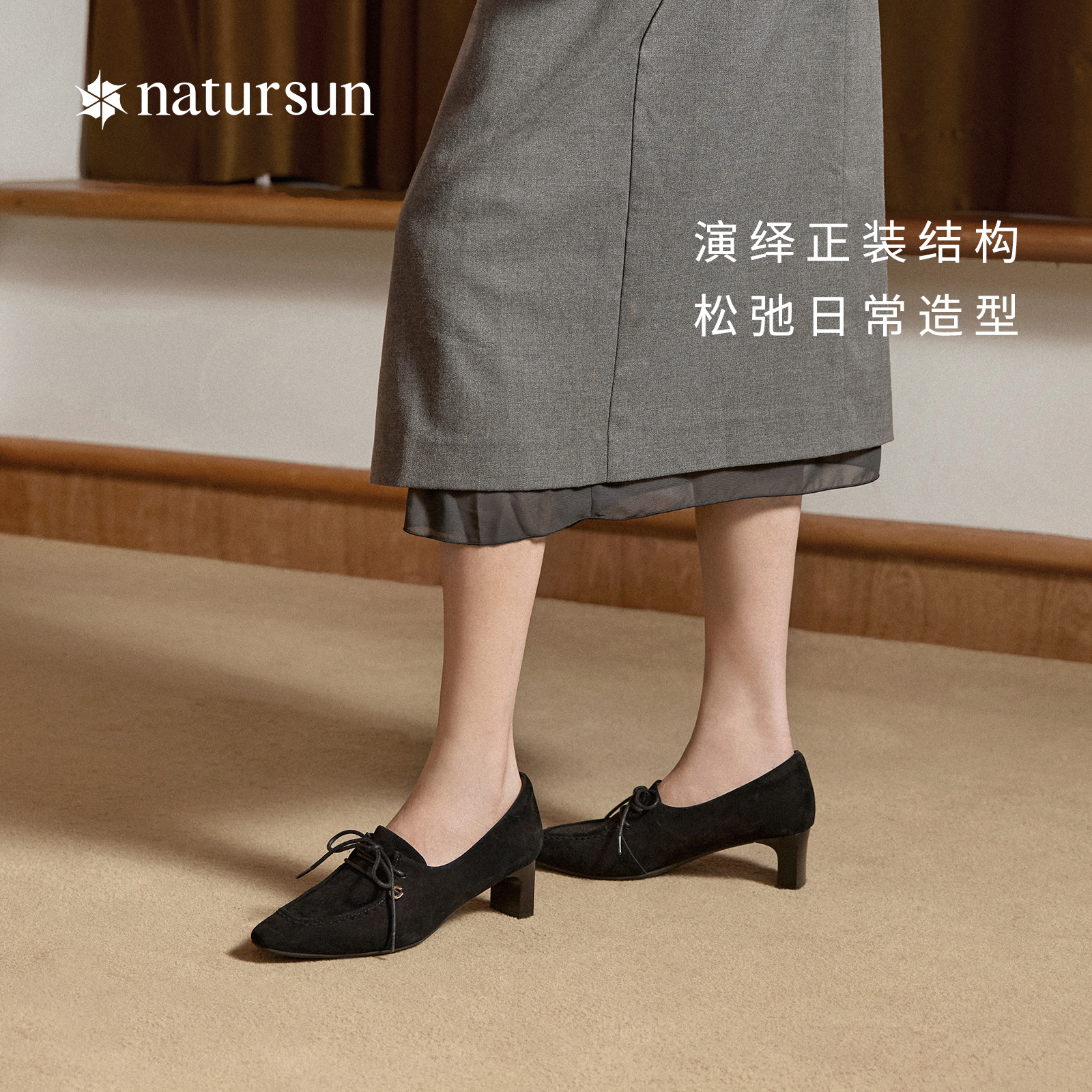 天猫natursun方跟乐福鞋2025冬季新款气质通勤显瘦小方头不累脚高跟鞋
