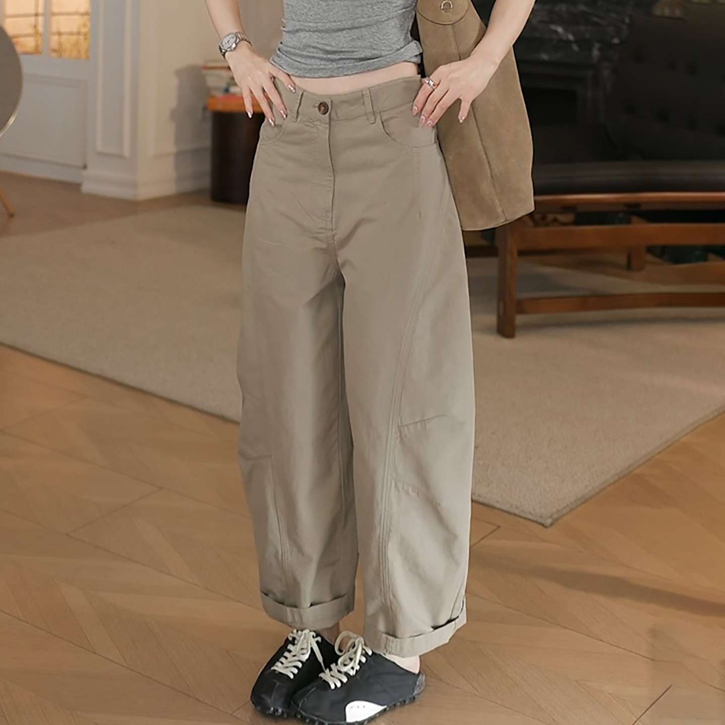 Ader卡其色复古水洗弯刀九分裤,2026春夏新款,以经典卡其色调融合复古水洗工艺,呈现自然做旧质感,尽显随性慵懒风范。独特弯刀剪裁贴合腿部线条,九分长度巧妙拉长比例,视觉显瘦又显高。高腰设计提升腰线,搭配微阔直筒版型,包容各种身材,轻松打造利落休闲造型。精选优质棉质面料,柔软透气,穿着舒适自在。无论是搭配简约T恤、衬衫还是针织衫,都能轻松驾驭日常通勤或周末出游,时尚百搭,是衣橱中不可或缺的实用单品。