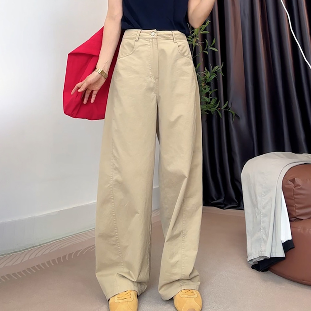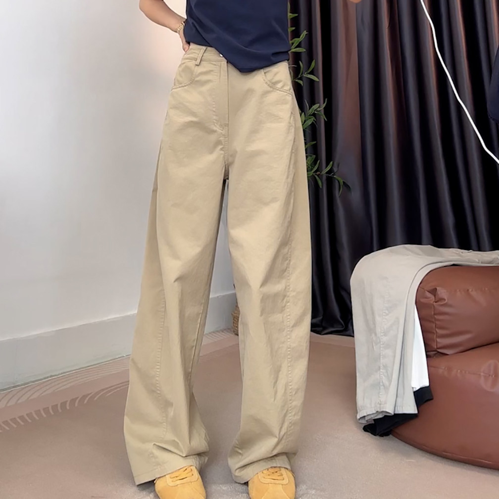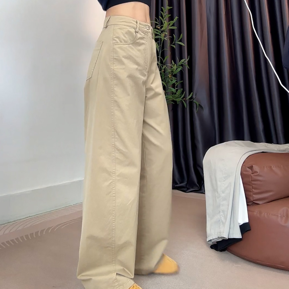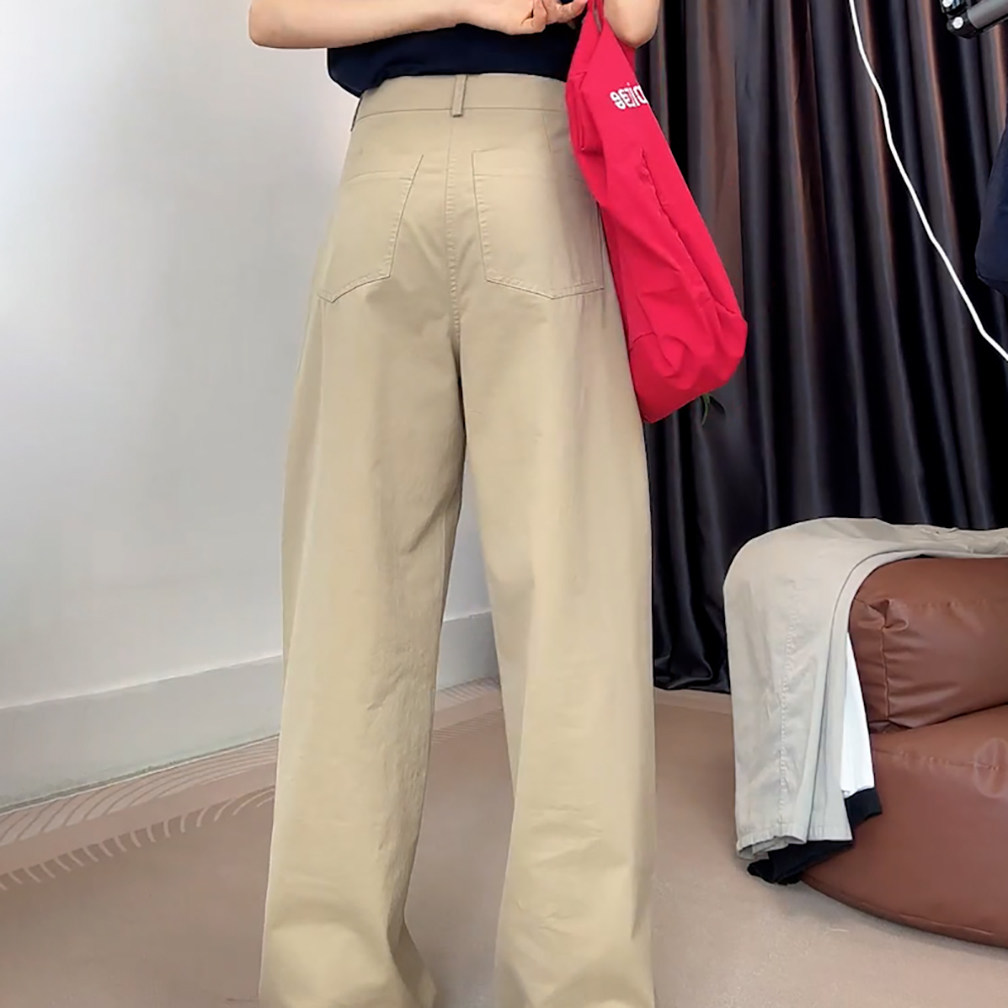 淘宝Ader卡其色高腰窄版弯刀休闲裤女2026春季新款时尚百搭显瘦休闲裤