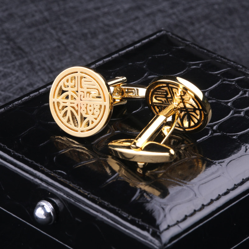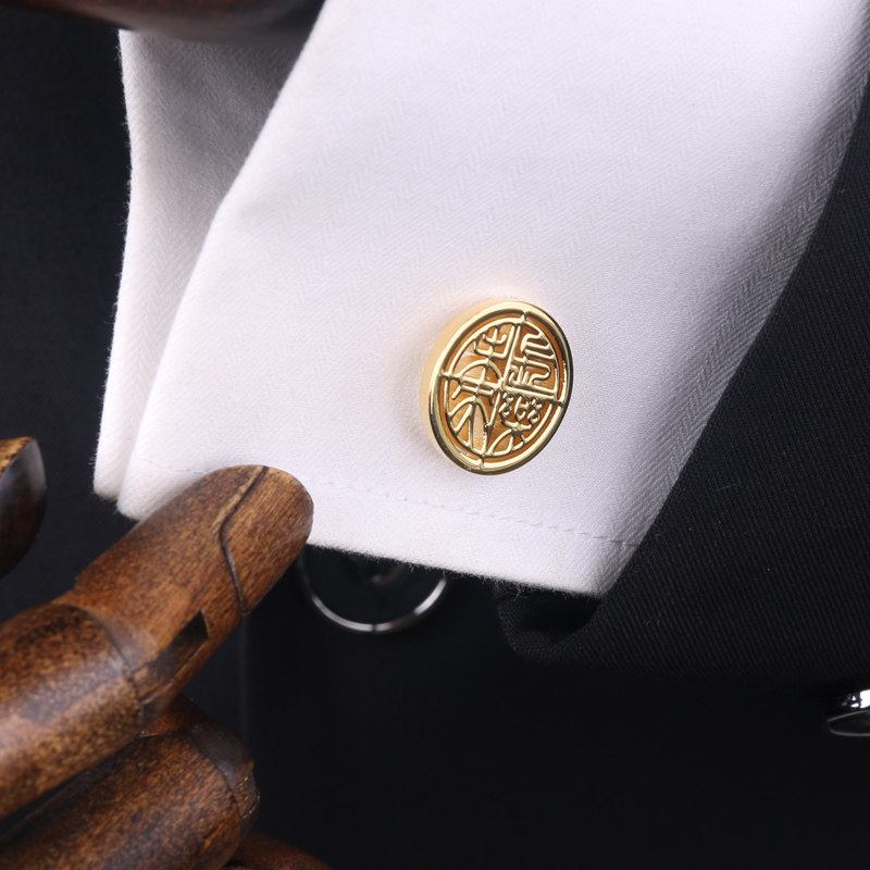天猫长乐未央法式袖钉袖扣衬衫西装镂空生日礼物男生创意雕刻胸针套装