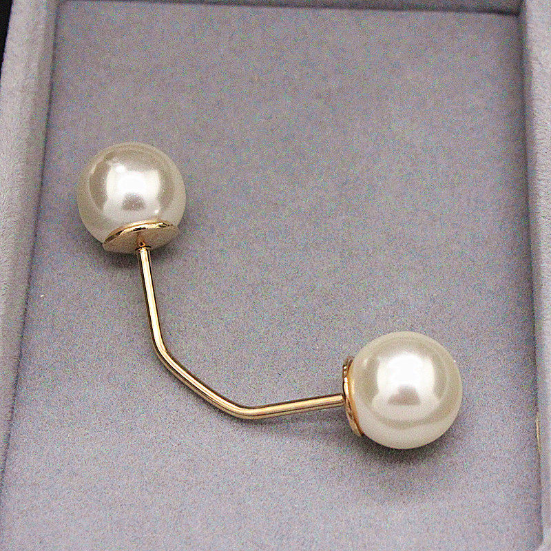 淘宝百搭简易梯形双头珍珠螺丝扣防走光胸针别针扣 男女士袖扣领针扣