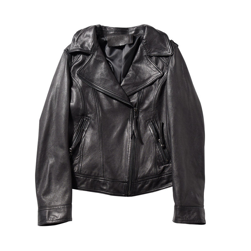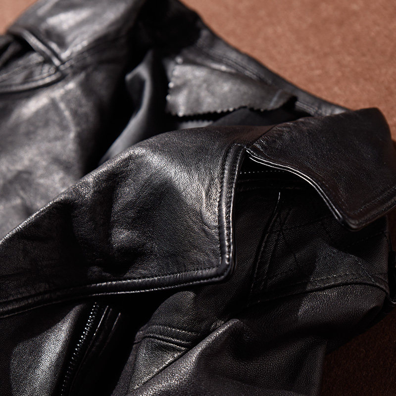 这款女士机车服短款修身外套,精选高阶水洗工艺处理的绵羊皮制成,皮质柔软细腻,触感亲肤舒适,兼具挺括感与垂坠感。经过特殊水洗工艺,面料呈现出自然的复古质感与轻微做旧效果,增添时尚层次感。修身剪裁贴合女性曲线,短款设计拉长腿部比例,彰显利落干练气质。经典机车领、金属拉链与对称口袋等细节保留酷飒风格,同时兼顾实用性与美观度。适合春秋季节穿搭,可搭配裙装或裤装,轻松驾驭日常通勤、休闲出街等多种场合,是兼具个性与质感的时尚单品。