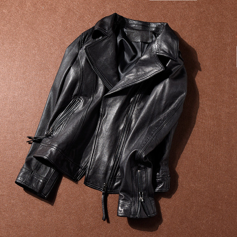 淘宝高阶 水洗的软软的绵羊皮 女士皮衣机车服 短款 修身外套 春秋款