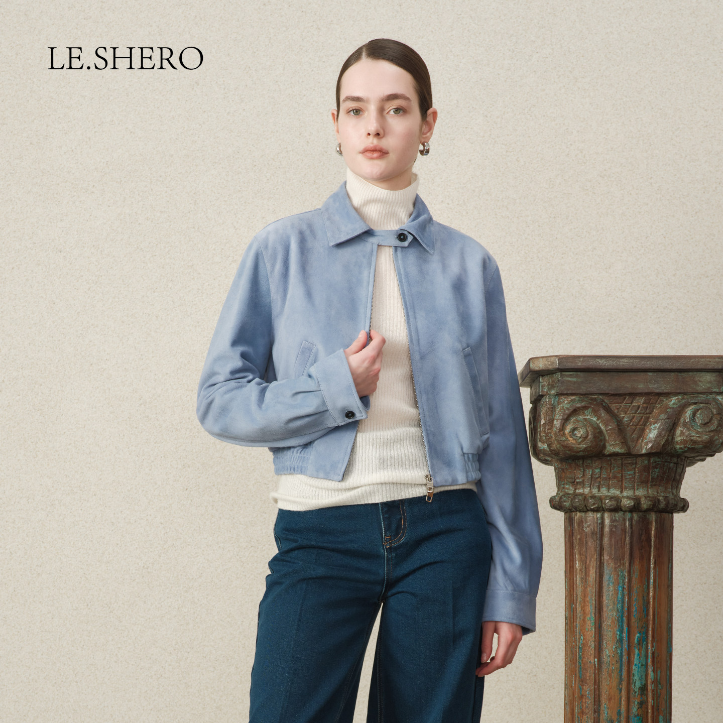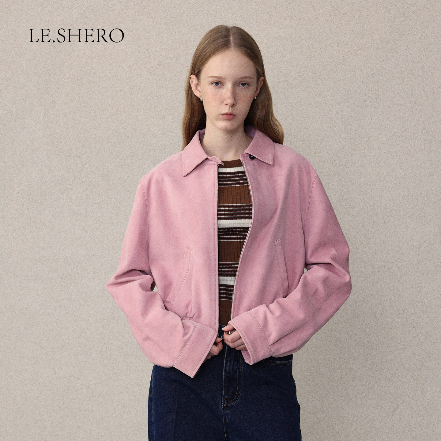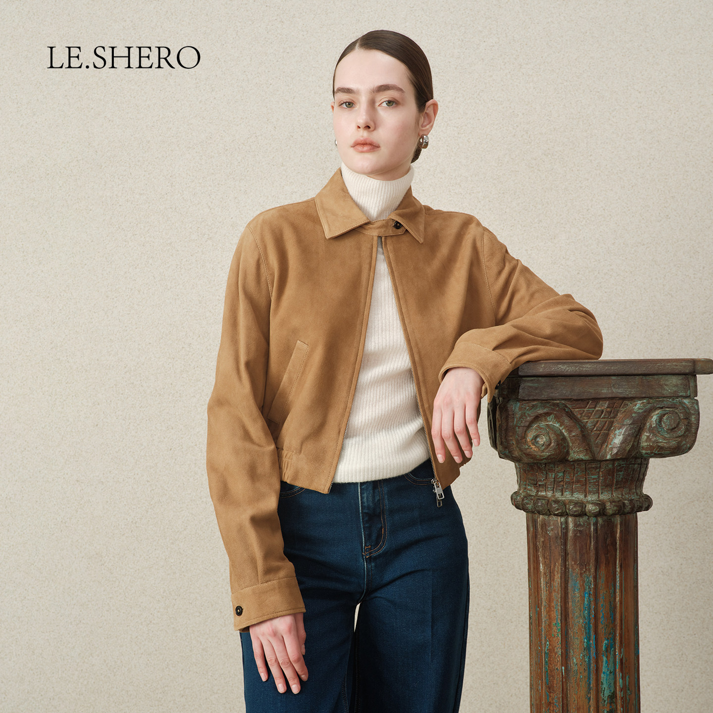 LE.SHERO原创翻领短款反绒羊皮外套,是沈梦辰、胡杏儿等明星同款时尚单品。精选优质反绒羊皮,触感柔软细腻,保暖性佳,兼具质感与舒适度。经典翻领设计搭配利落短款剪裁,轻松拉长身材比例,凸显女性干练气质。前襟金属拉链与精致走线工艺彰显匠心品质,可搭配裙装或裤装,轻松驾驭通勤、约会等多种场合。无论是秋冬叠穿还是初春外披,都能展现率性 chic 风格。LE.SHERO以简约设计诠释女性力量,打造兼具时尚与实穿的都市女性衣橱必备单品,演绎独立自信的“她力量”。