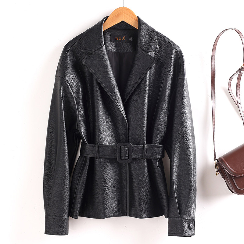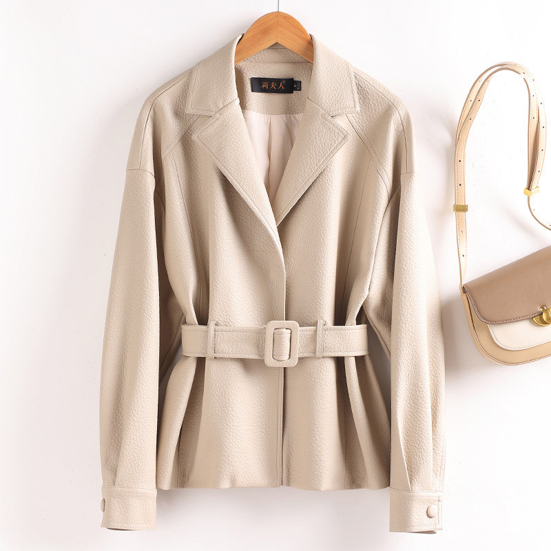 淘宝2025春秋新款真皮皮衣女短款系带收腰绵羊皮夹克宽松显瘦气质外套