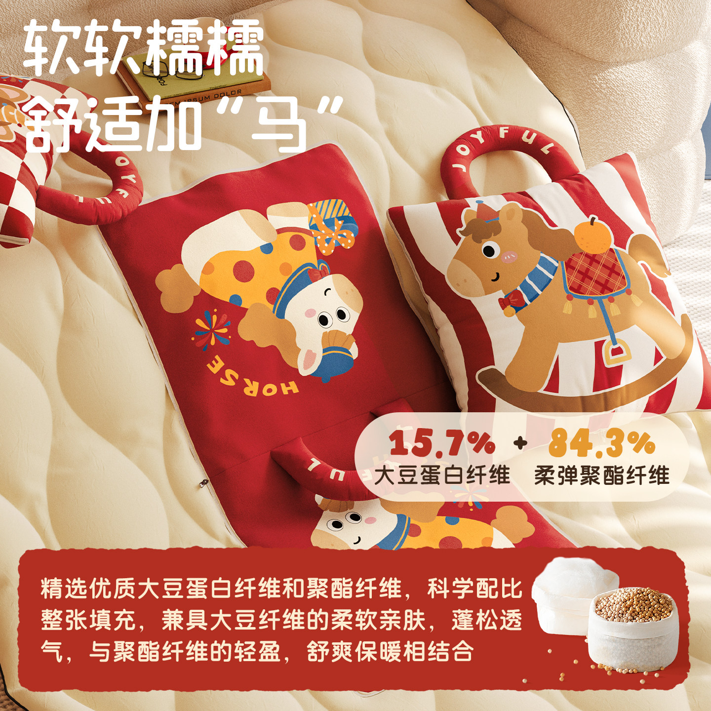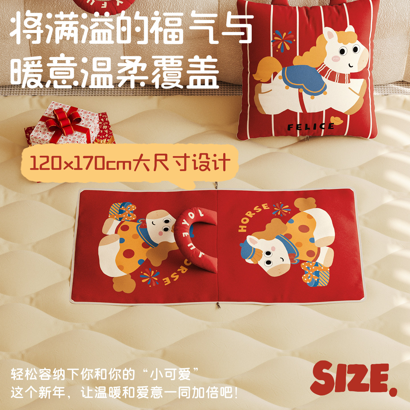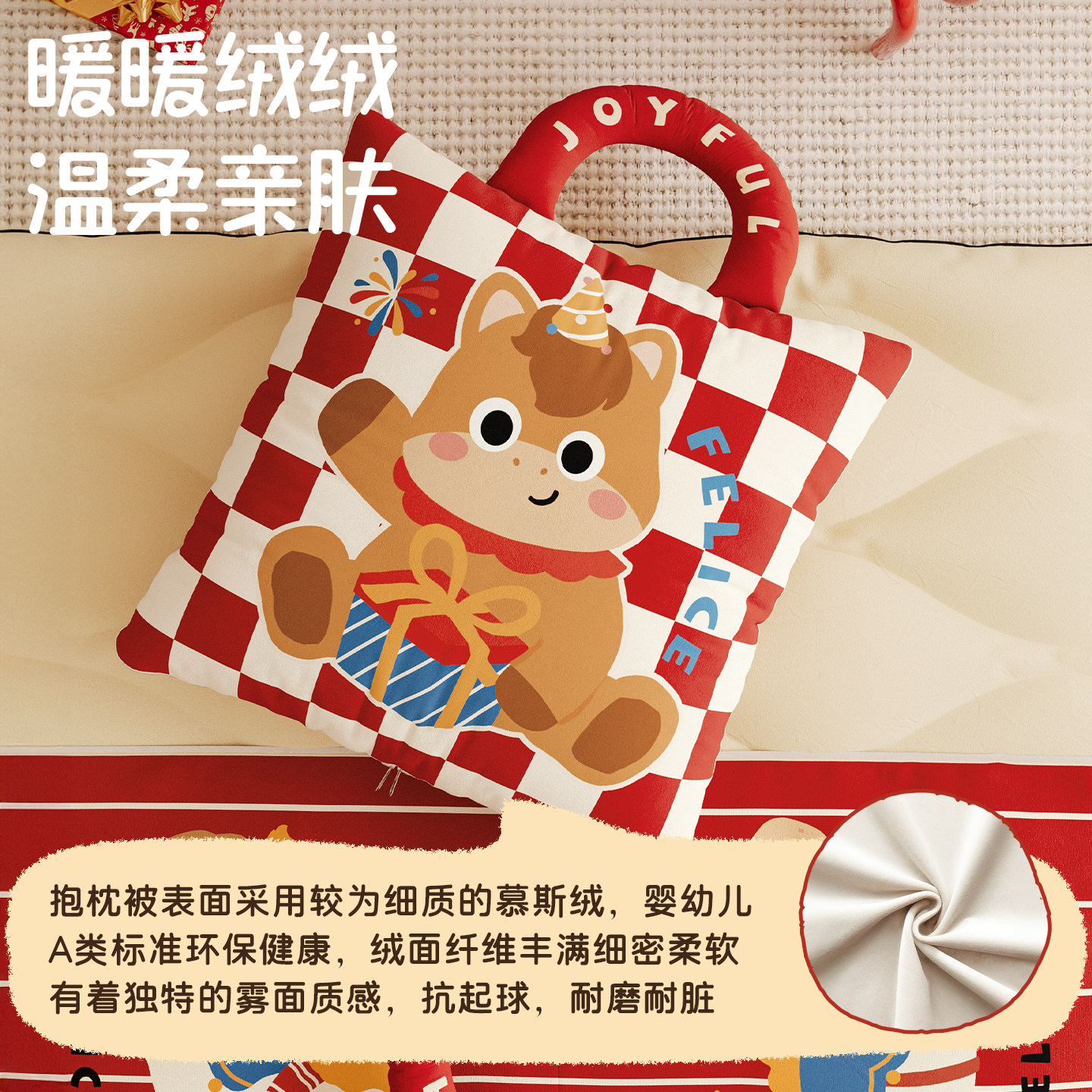 天猫MeitingHome马年新春红色抱枕毯子二合一车载被子折叠两用可收纳