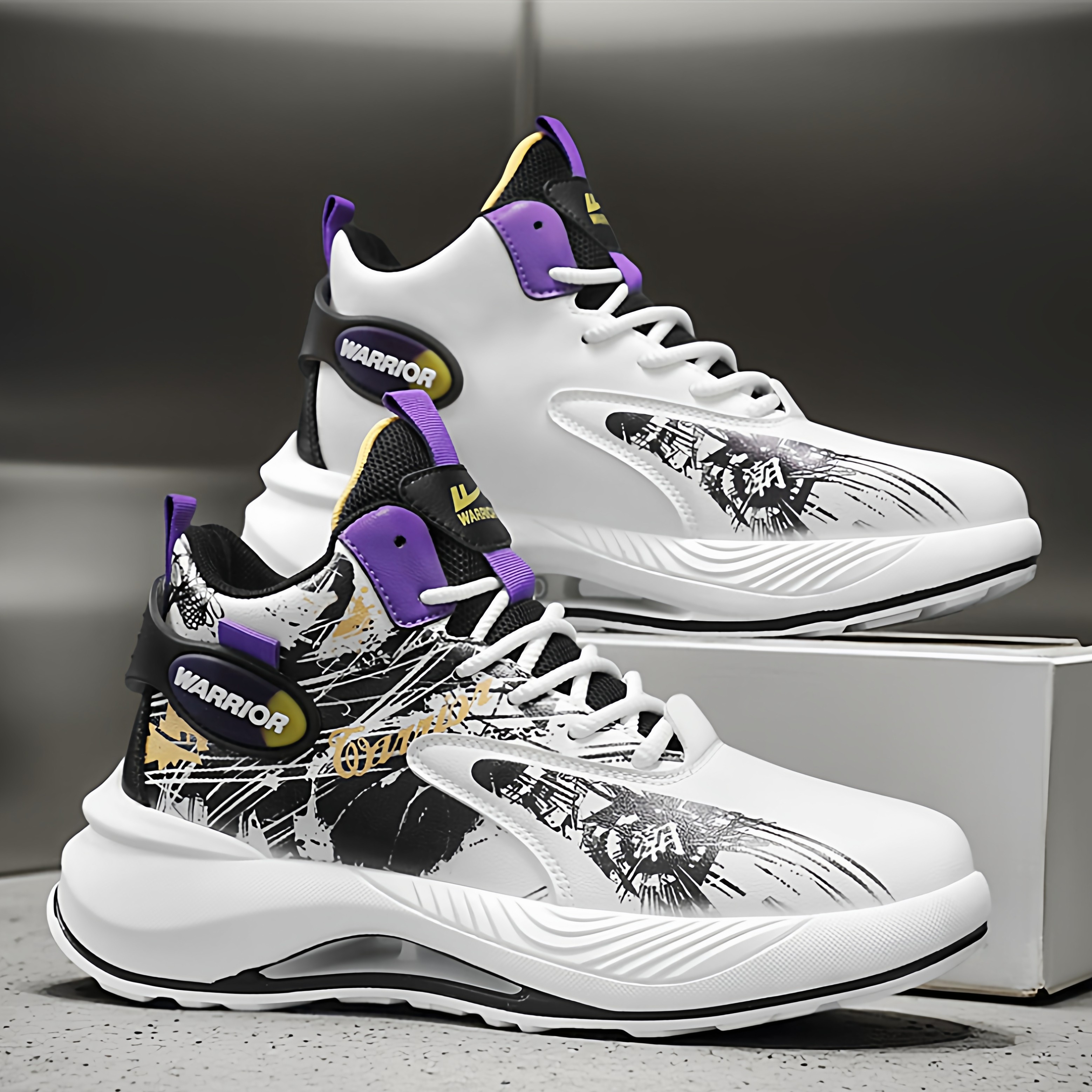 青少年运动鞋高筒网面鞋子男鞋初中学生厚底减震耐磨紫色篮球球鞋