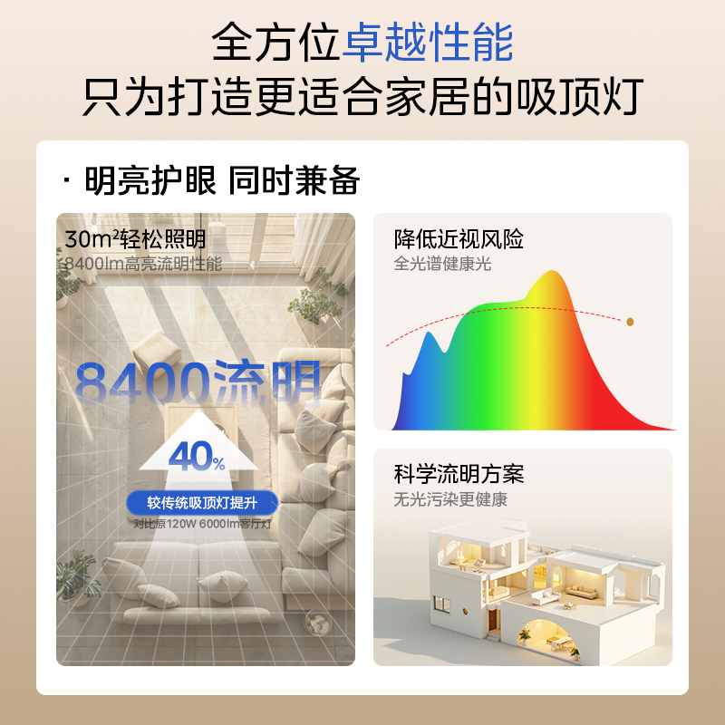 lipro 超薄全光谱护眼客厅吸顶灯高亮智能简约卧室灯全屋护眼灯E2