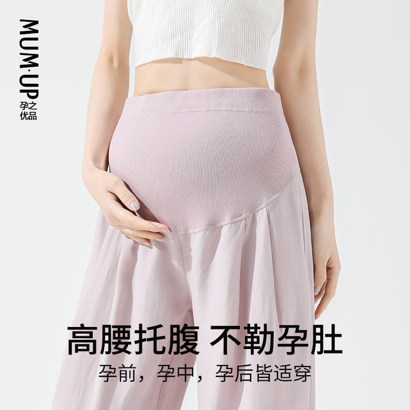 天猫孕之优品天丝孕妇裤夏薄款外穿托腹不勒肚子大码宽松阔腿裤山本裤