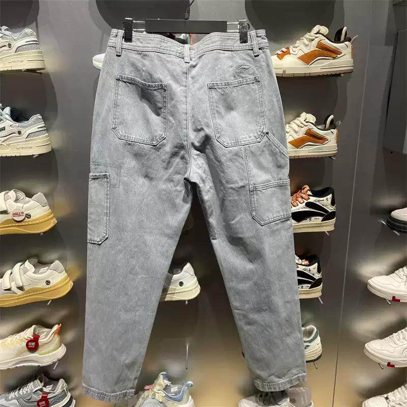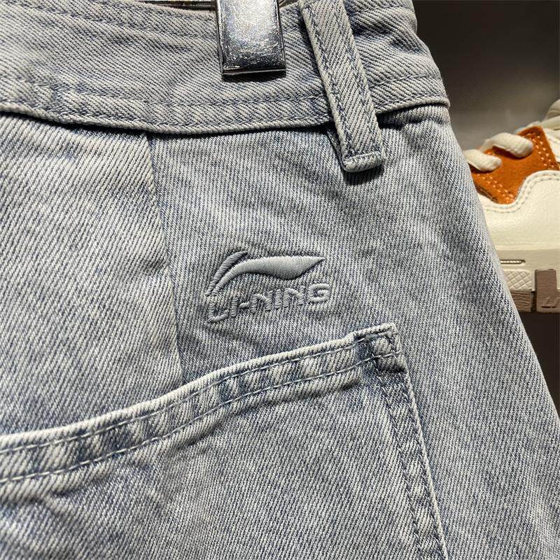 淘宝李宁男子牛仔裤直筒夏新款时尚舒适宽松运动休闲水洗长裤AJQT015