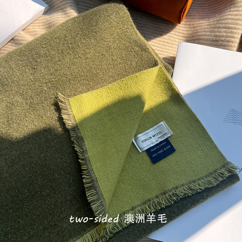 2025年冬季新款绿色双面羊毛纯色加厚保暖围巾,采用优质澳洲美利奴羊毛,双面可戴设计,一面细腻亲肤,一面挺括有型,兼顾舒适与高级质感。经典日系极简风格,纯绿色调优雅百搭,男女皆宜,是情侣围脖的理想选择。加厚工艺有效锁温,防风保暖,适合寒冷季节日常通勤或户外活动。简约无装饰设计,凸显低调奢华气质,轻松搭配大衣、羽绒服或针织衫。柔软不扎肤,轻盈保暖,是冬日不可或缺的时尚单品,为寒冷季节注入温暖与格调。
