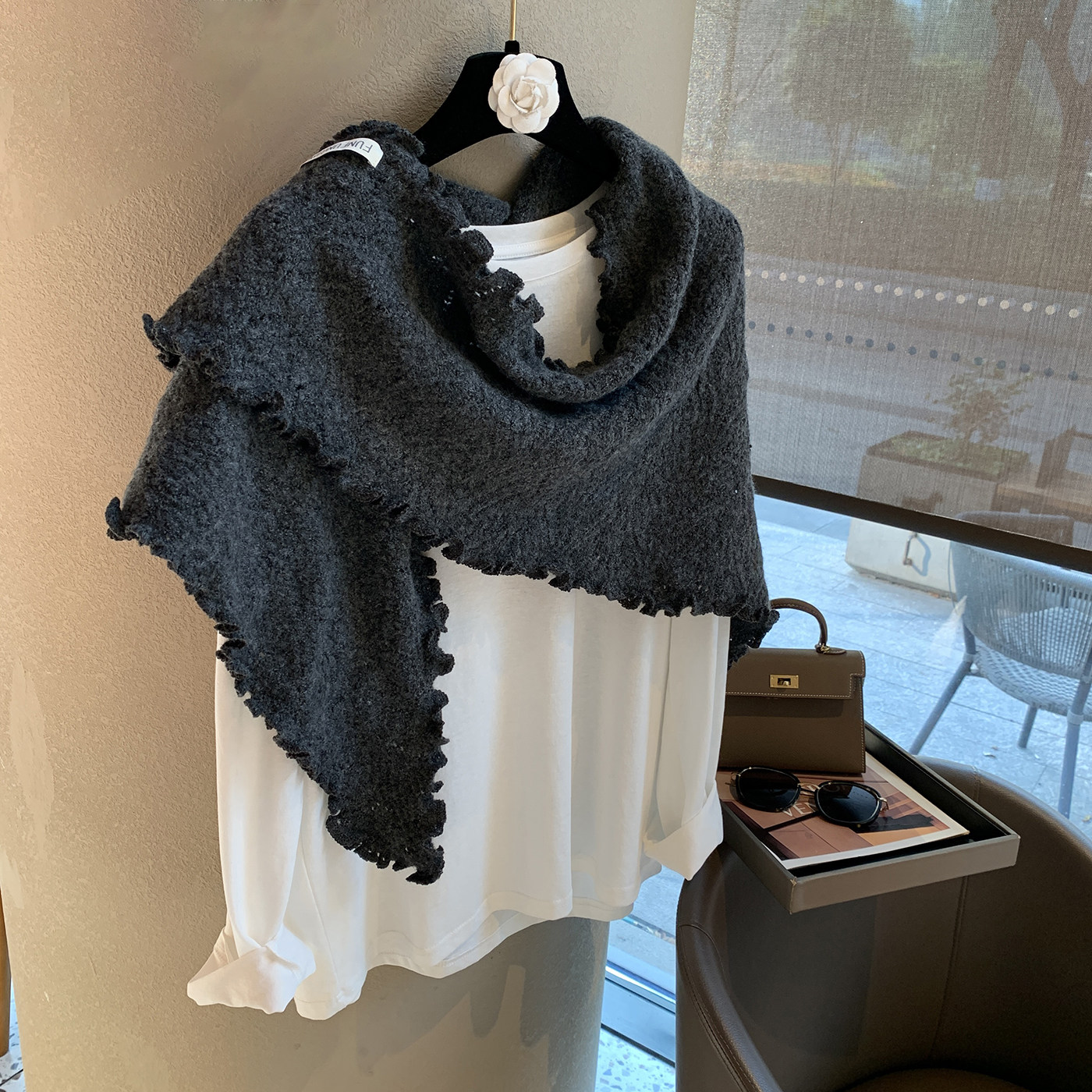 这款慵懒风氛围木耳边三角巾羊毛披肩,是秋冬不可或缺的时尚单品。采用优质羊毛混纺面料,轻盈柔软,保暖性佳,薄款设计不显臃肿,轻松打造随性韩系风格。独特的木耳边装饰增添甜美与层次感,三角巾造型可灵活变换多种围法,既能作为围巾保暖颈部,也可当作披肩提升整体造型感。无论是搭配大衣、毛衣还是针织衫,都能瞬间提升气质,展现温柔慵懒的冬日氛围。适合日常通勤、约会或休闲出行,兼具实用性与美观性,是追求时尚与舒适女性的理想选择。