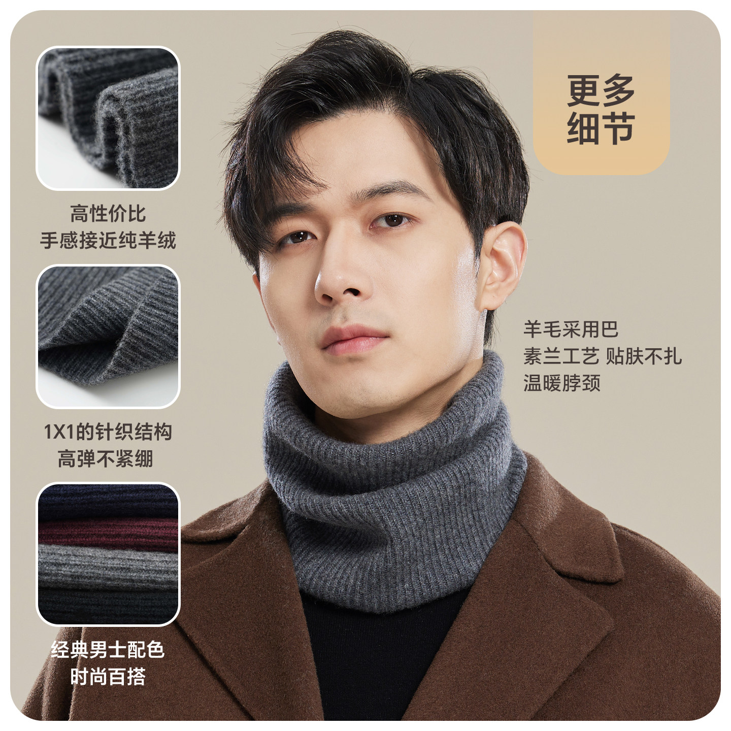 天猫玖慕男士山羊绒保暖围脖秋冬季防寒加厚骑车针织围巾羊毛护颈脖套