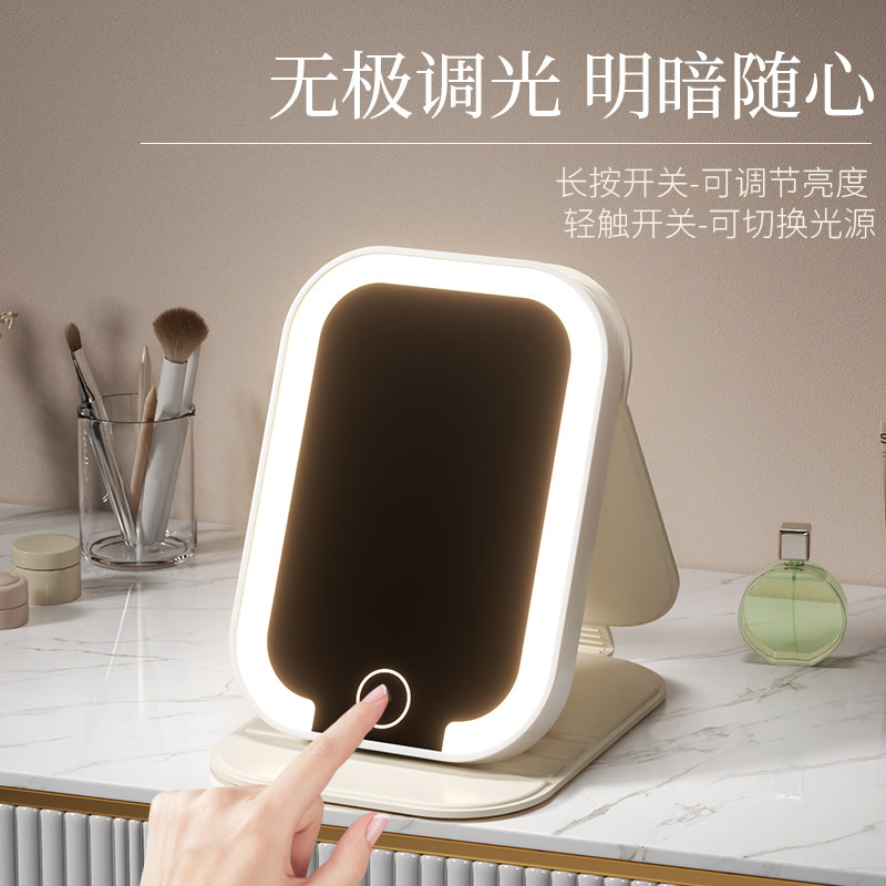 台式桌面化妆镜带灯led家用梳妆台补光学生宿舍高级感折叠镜子