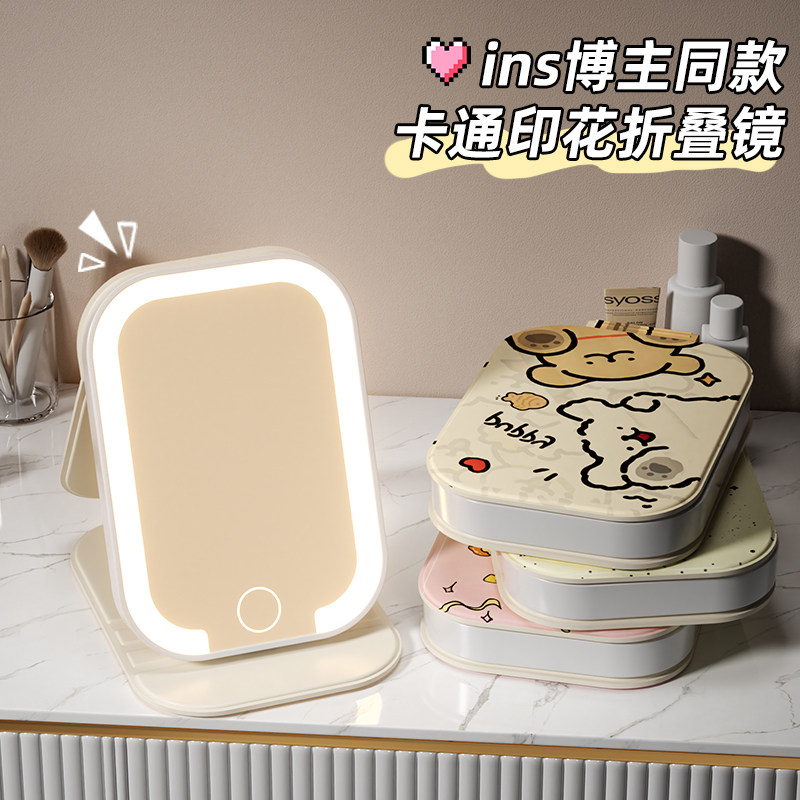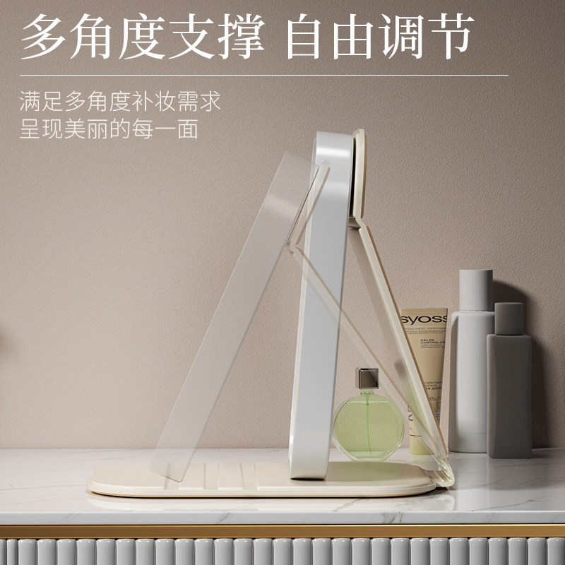 淘台式桌面化妆镜带灯led家用梳妆台补光学生宿舍高级感折叠镜子