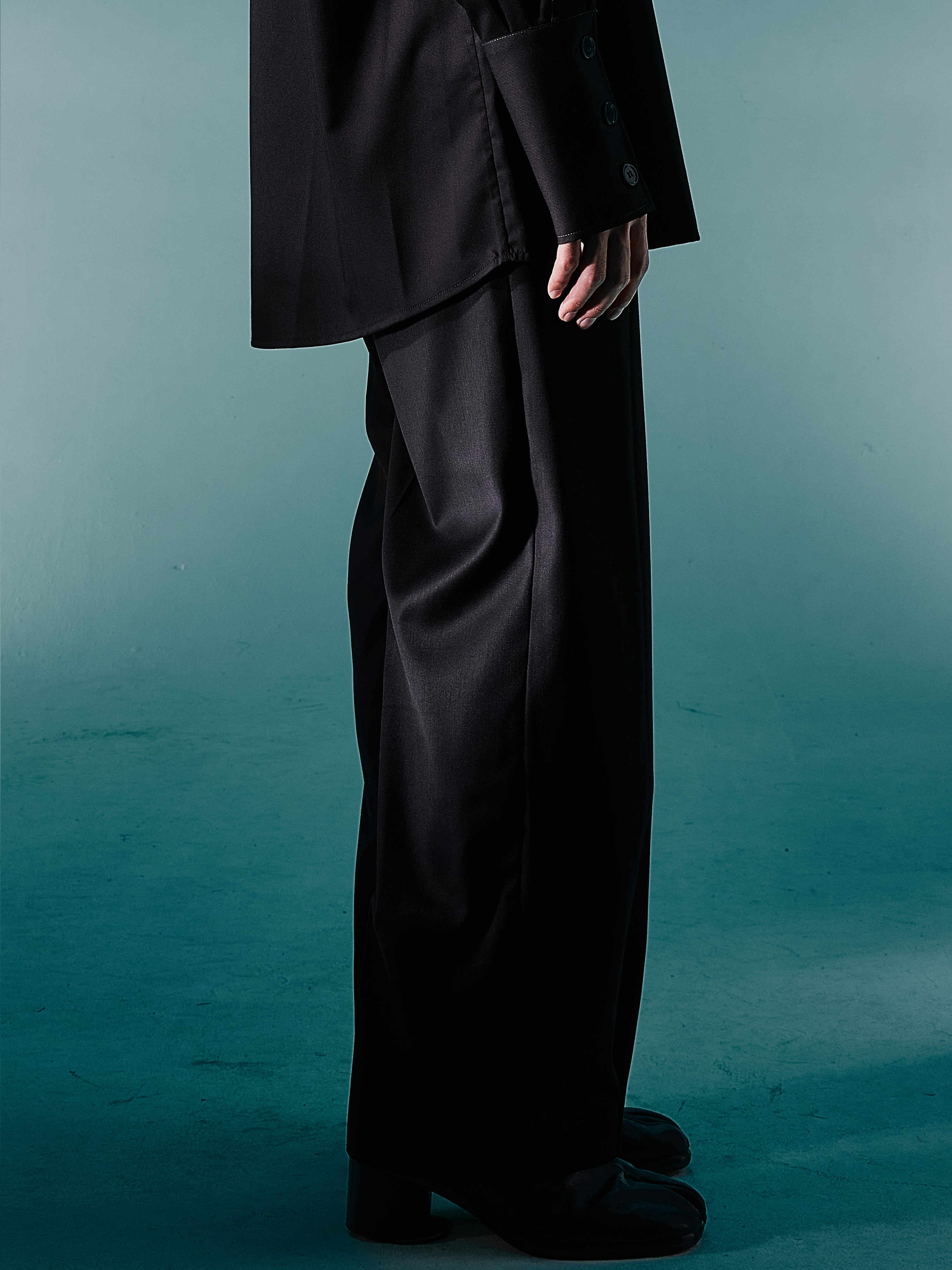 Acme cultum120S精纺羊毛那不勒斯高腰单褶直筒白西裤男垂感长裤