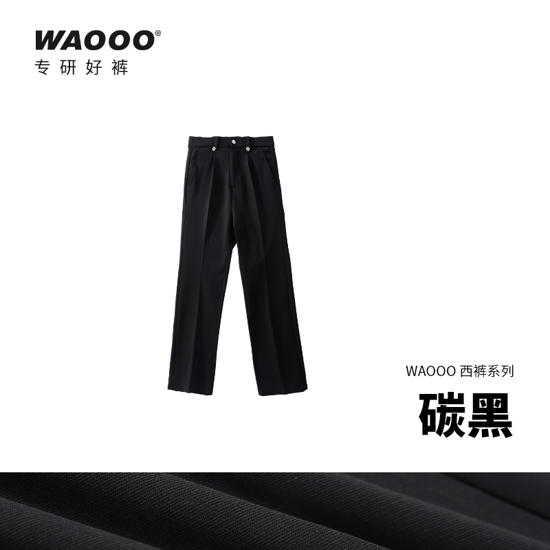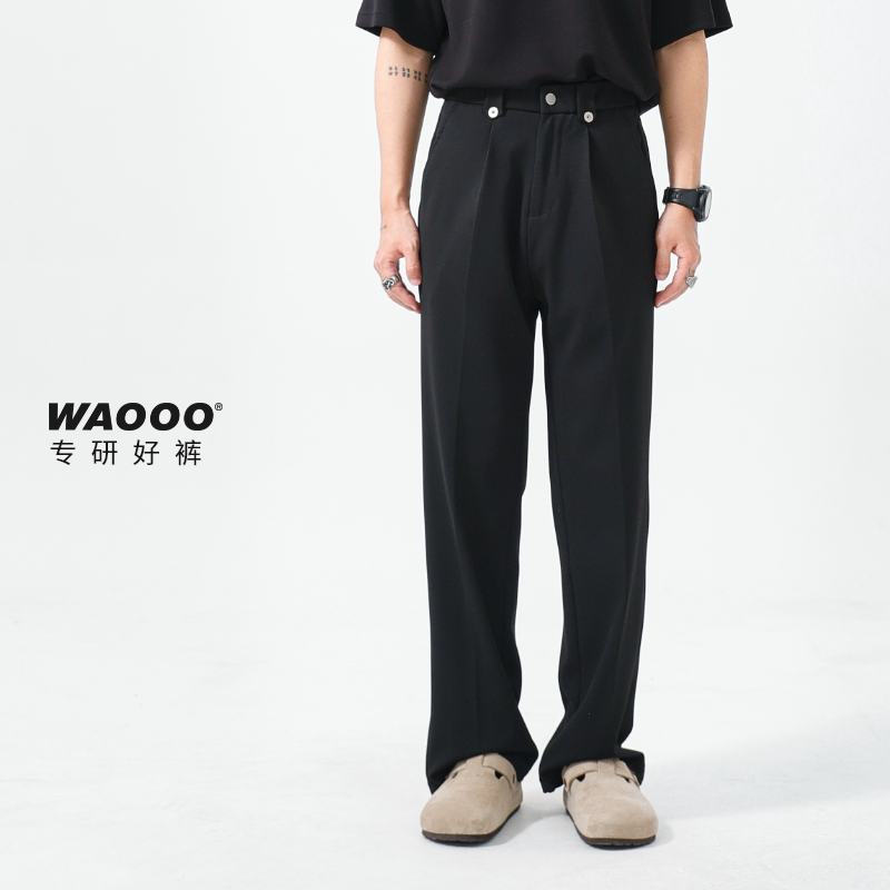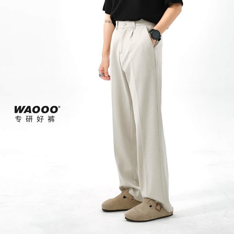淘宝WAOOO 夏季新款轻奢高级直筒宽松百搭垂感黑色杏色透气休闲西裤男