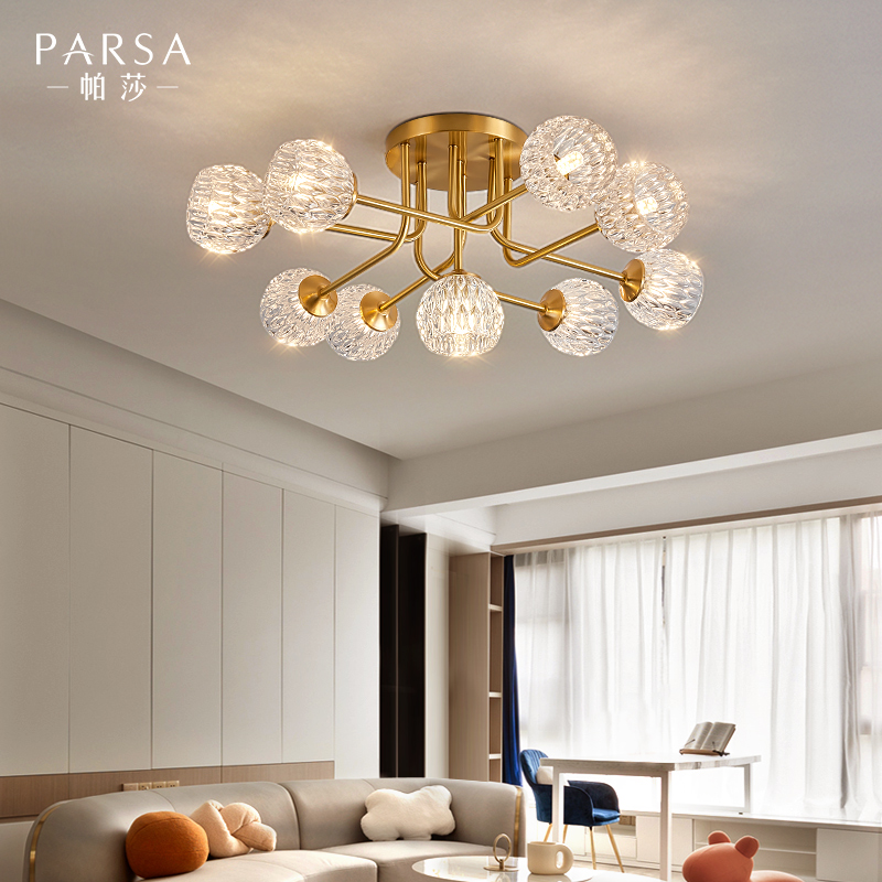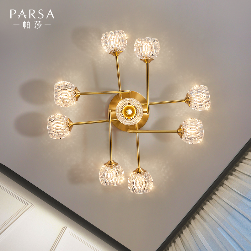 天猫帕莎客厅吸顶灯现代轻奢全铜简约创意水晶房间卧室灯2025新款