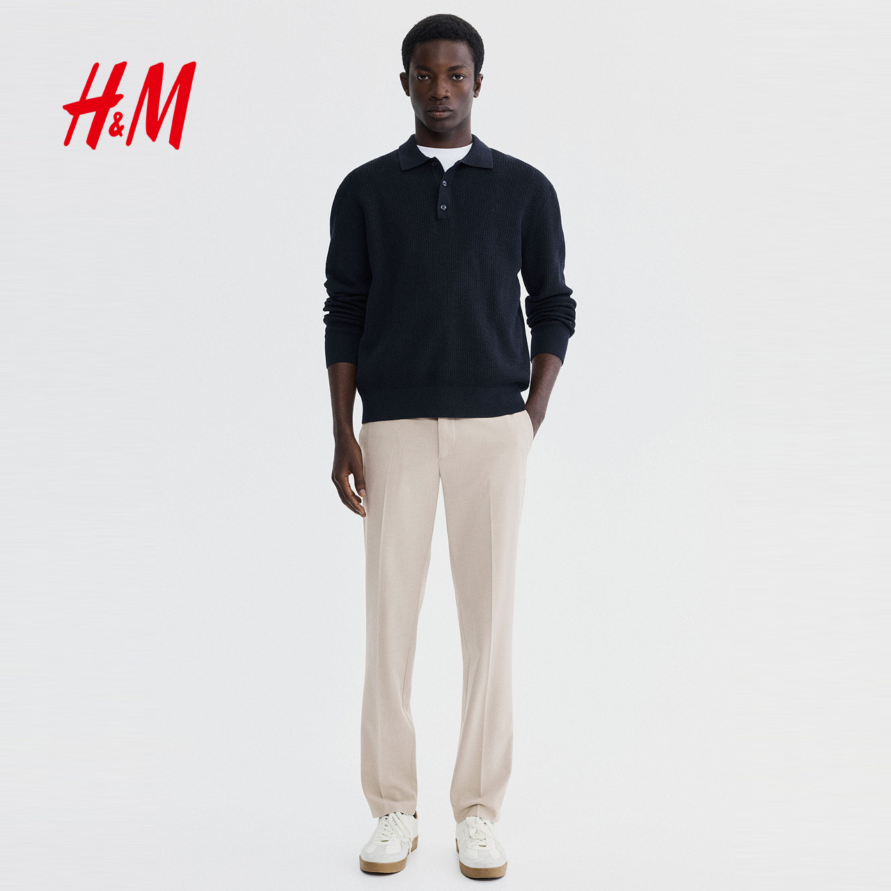 HM男装春季通勤西裤(款号1253395)以简约时尚的设计诠释现代都市型格。采用合身剪裁,兼顾舒适与挺括感,轻松驾驭办公室与日常出行场景。精选优质面料,轻盈透气,适合春季穿着。经典直筒版型搭配利落腰头设计,凸显干练气质,轻松搭配衬衫、针织衫或西装外套。细节处注重品质,隐形侧袋与后袋点缀实用与美观。无论是商务会议还是休闲社交,都能展现从容自信的男士魅力。HM以亲民价格呈现潮流质感,是春季衣橱不可或缺的百搭单品,诠释简约而不简单的都市风尚。