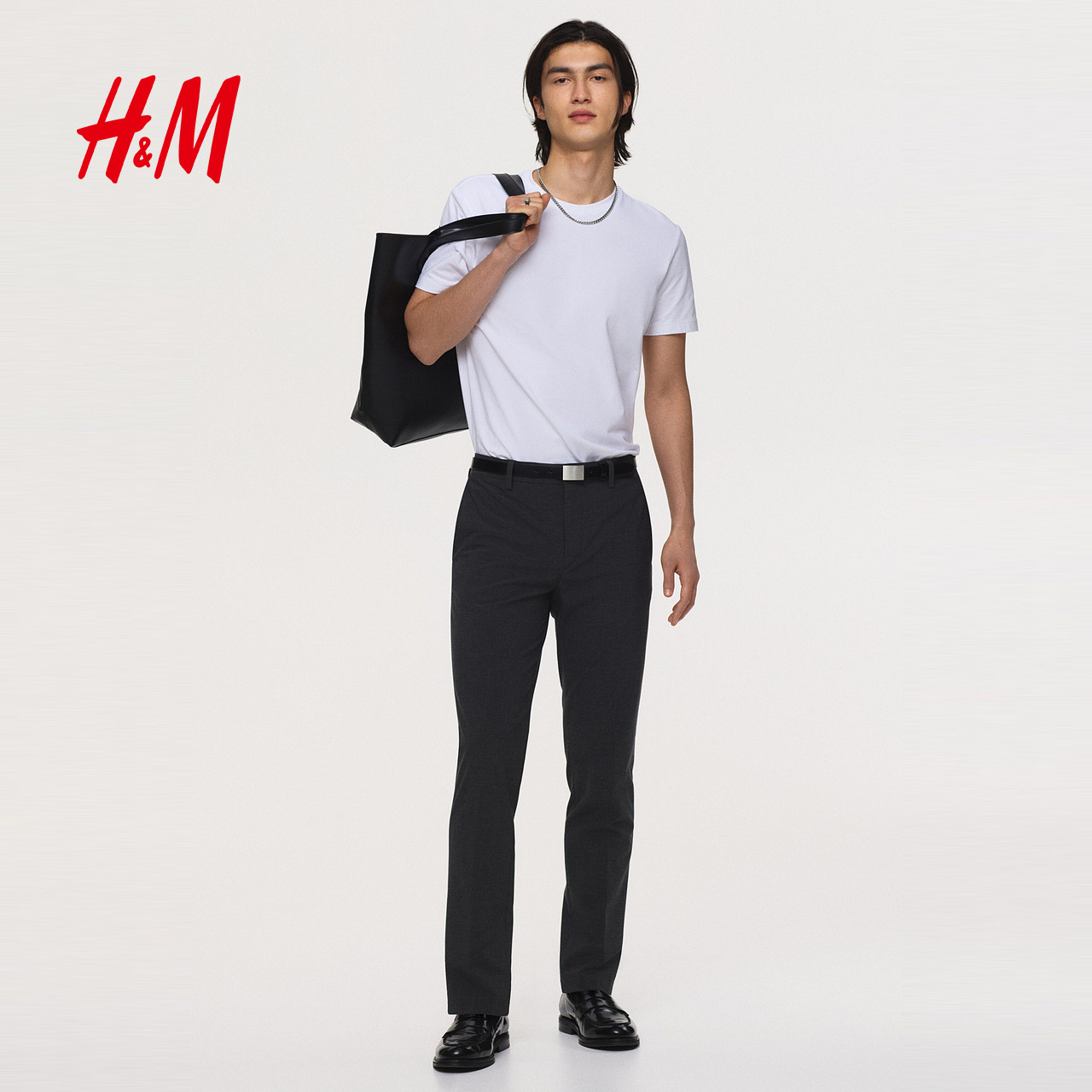 天猫HM男装西裤春季通勤合身版潮流商务时尚简约气质西裤长裤1253395
