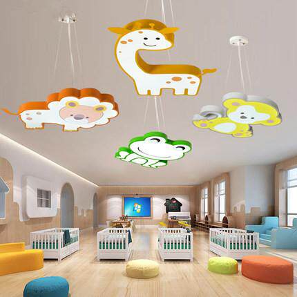 淘宝创意卡通狮子猴子动物造型吸顶灯早教灯儿童乐园吊灯幼儿园LED灯