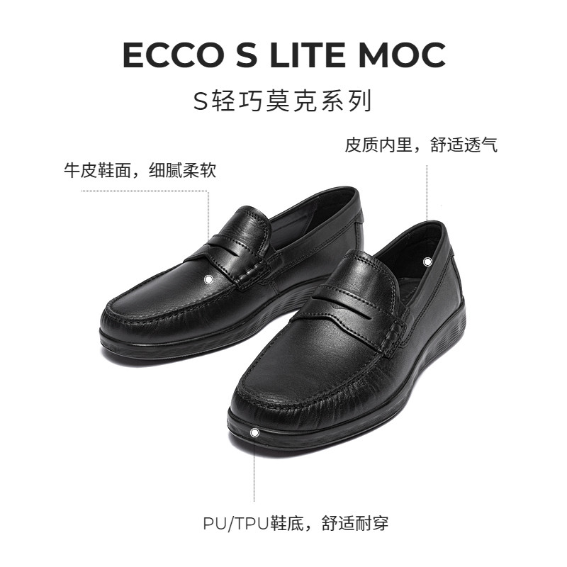 天猫ECCO爱步乐福鞋男 春夏真皮舒适一脚蹬正装皮鞋 轻巧莫克540534