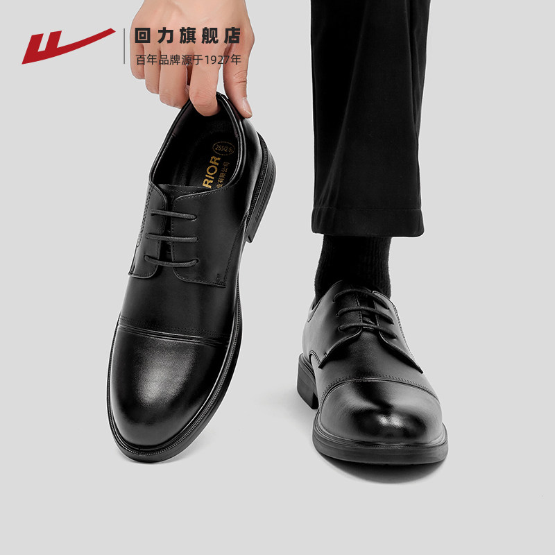 天猫回力男士皮鞋新款男鞋黑色新郎伴郎结婚鞋子休闲软底尖头商务皮鞋