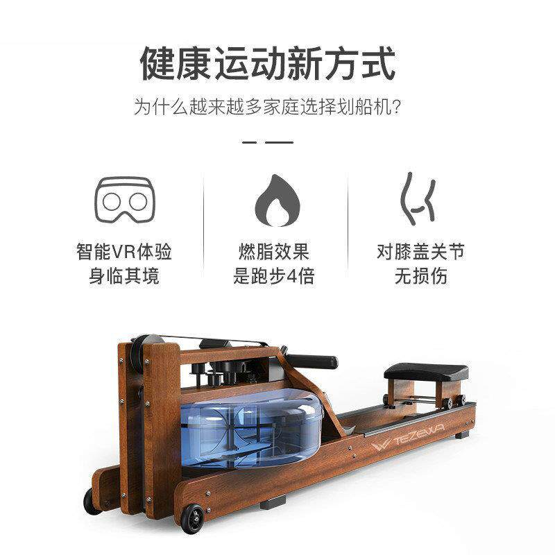淘实木水阻可折叠划船机健身房家用有氧运动健身器材模拟水阻划船机